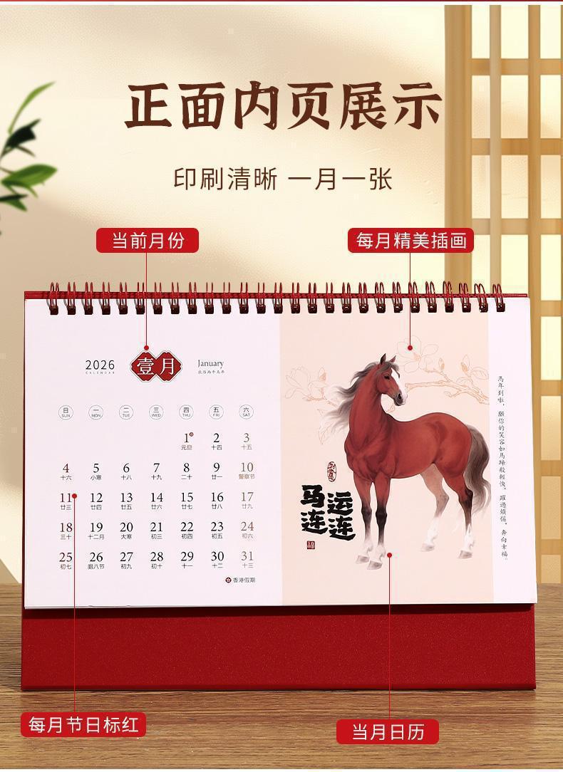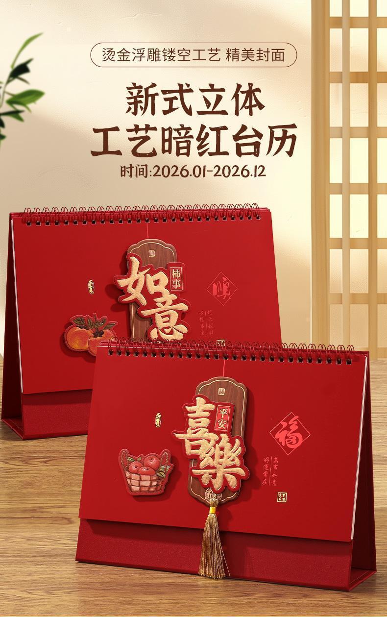 超值2本【烫金浮雕镂空工艺❗️精美大气上档次】2026日历新款桌面马年秋冬季新年台历新式立体工艺暗红居家款。ja