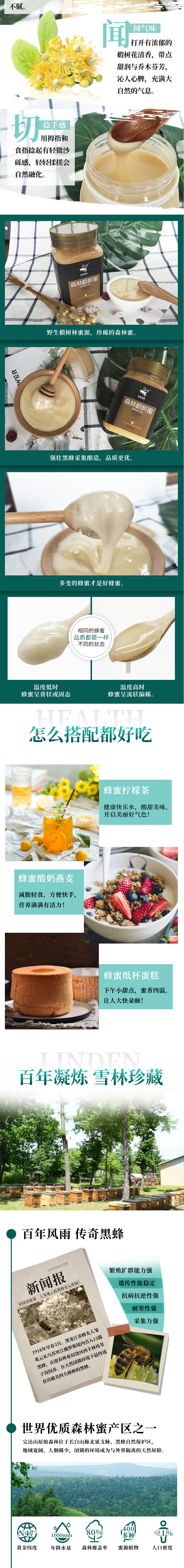 东北黑蜂椴树蜜 原始森林野生雪蜜 纯正结晶蜂蜜500g/瓶
