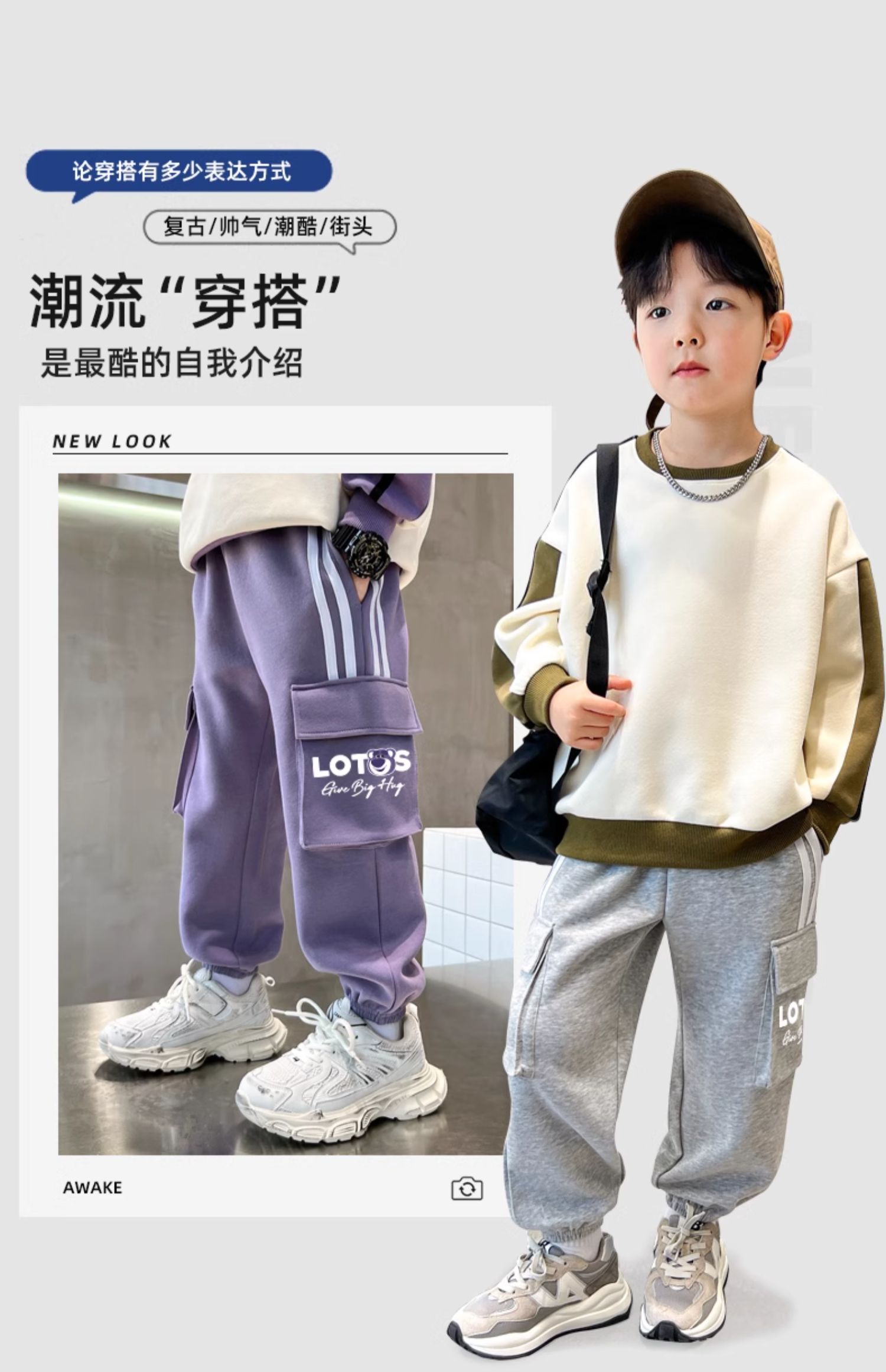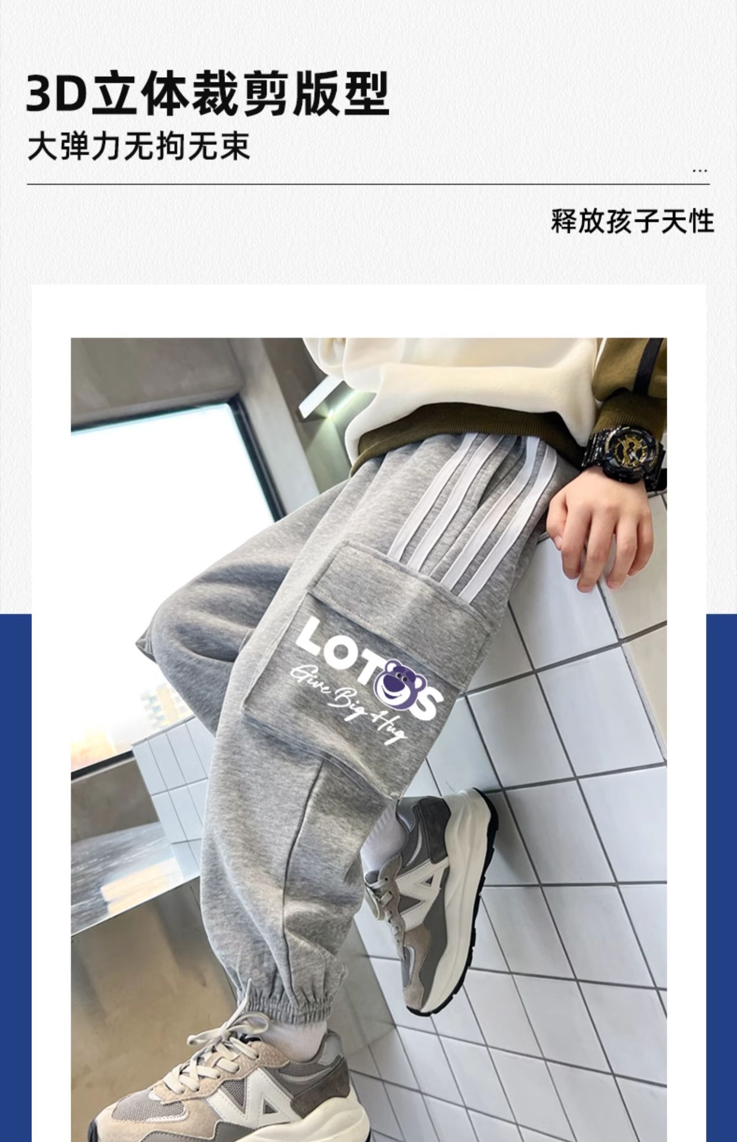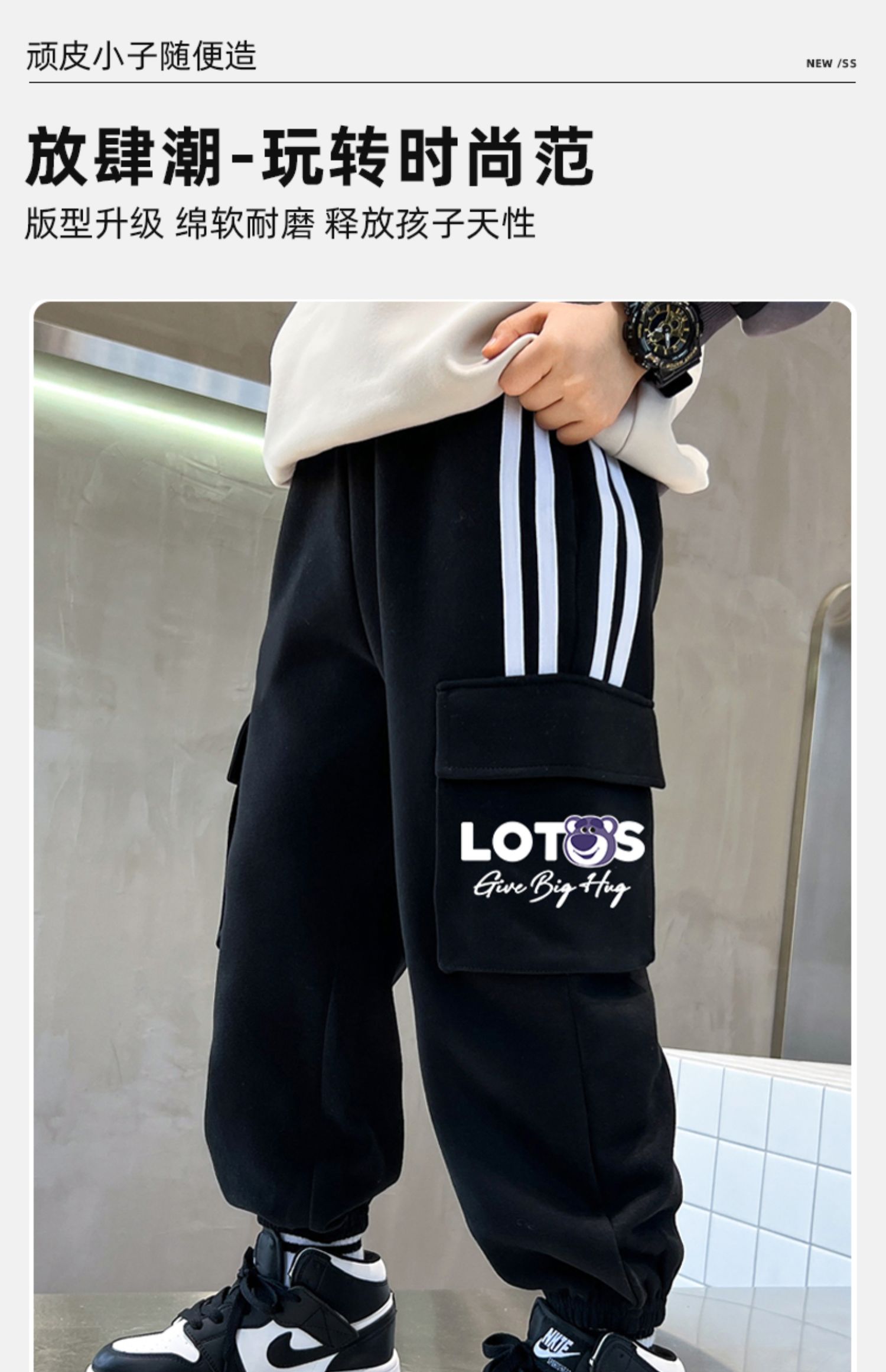 贝田男童运动裤春春款儿童工装裤2025春装酷帅洋气男孩春季裤子潮