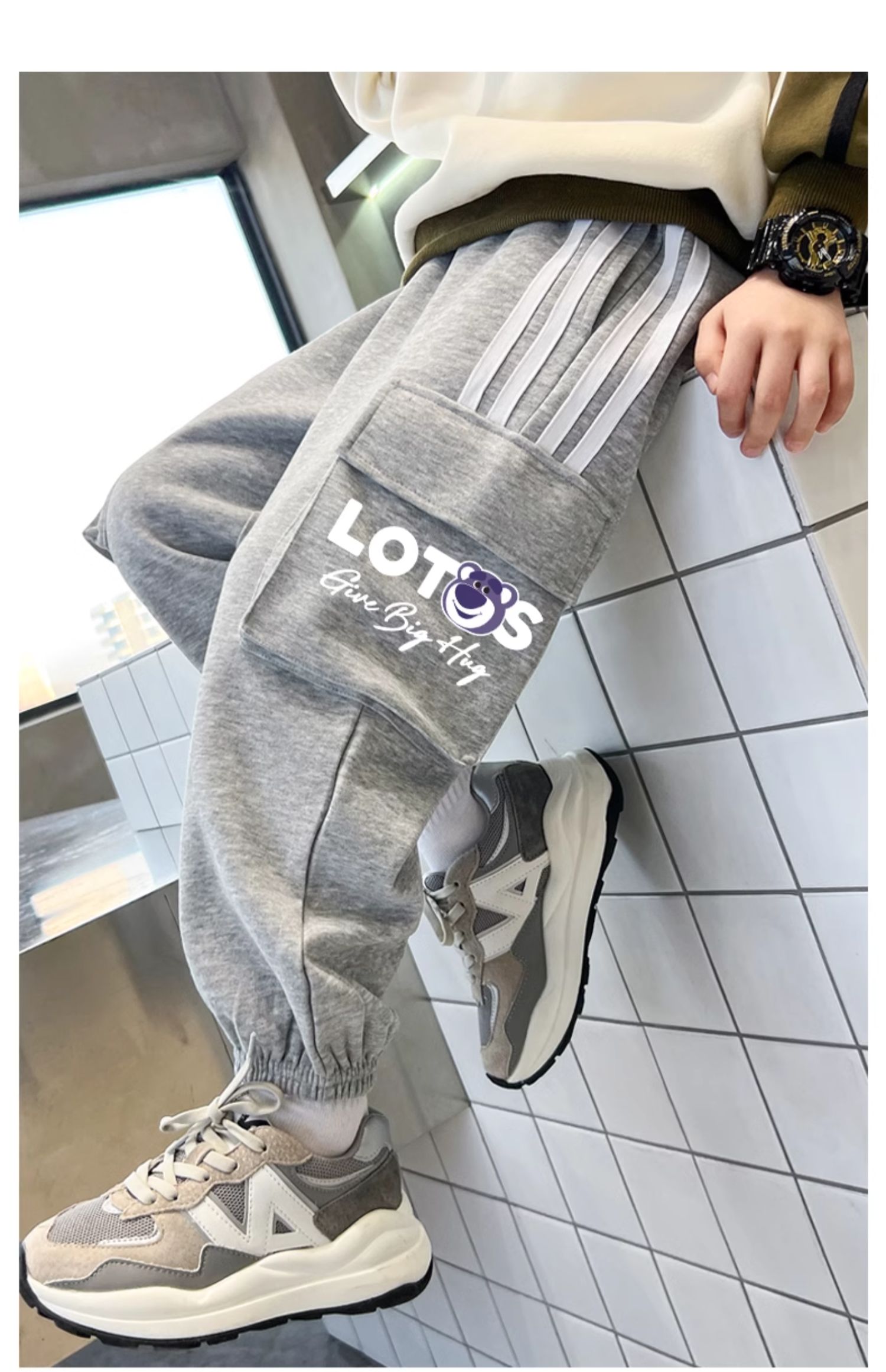 贝田男童加绒裤子秋冬款潮棉裤儿童加厚冬季2024新款一体绒运动裤