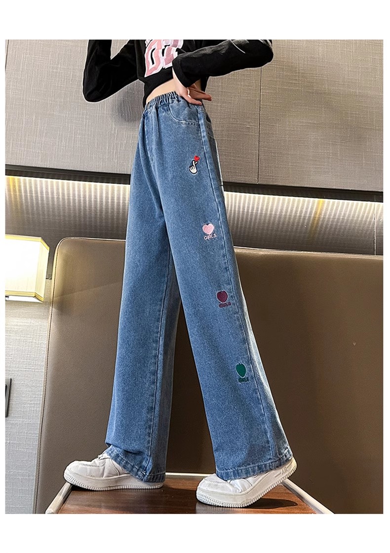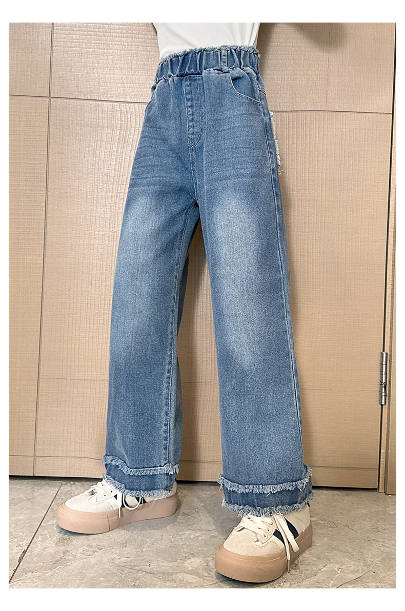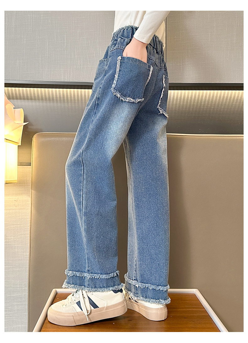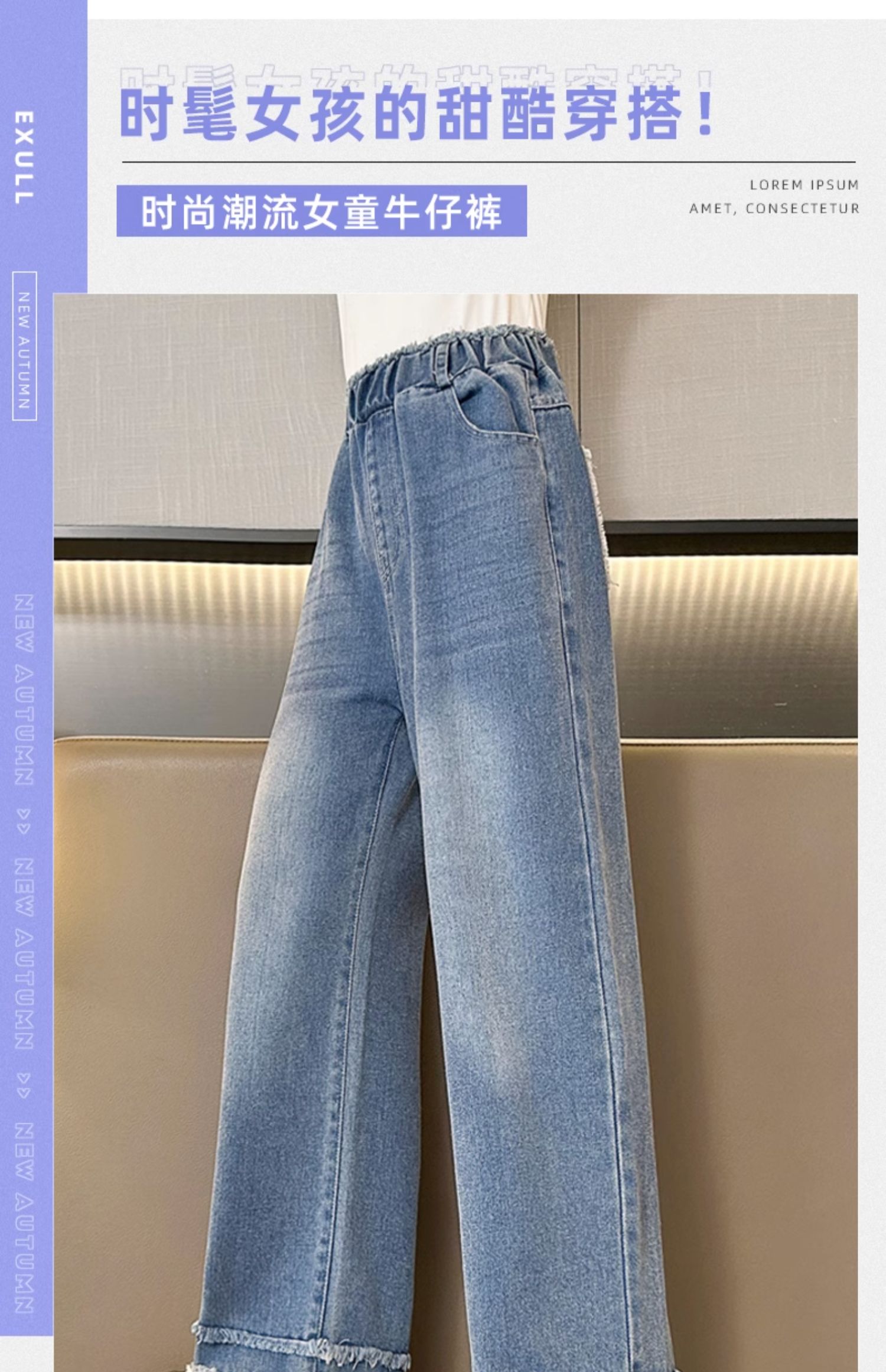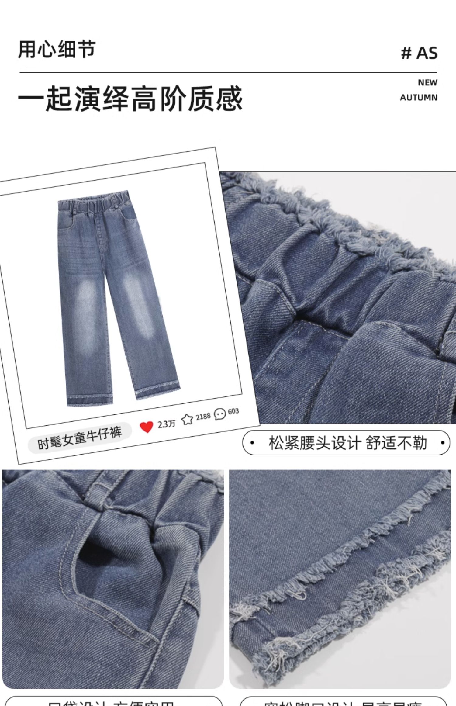 B177女童牛仔裤春秋款2025新款童装宽松儿童阔腿裤女大童春装裤子