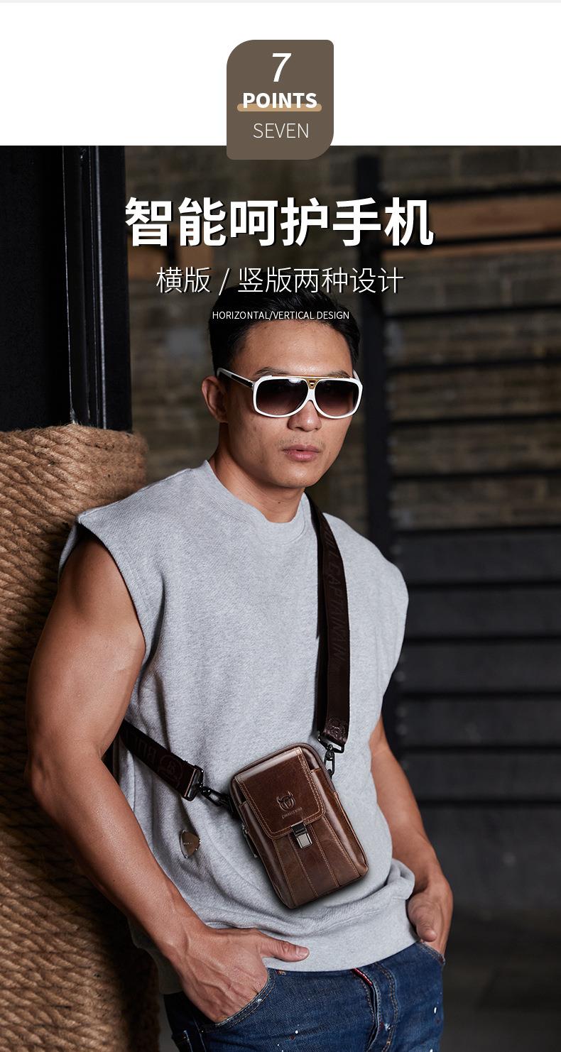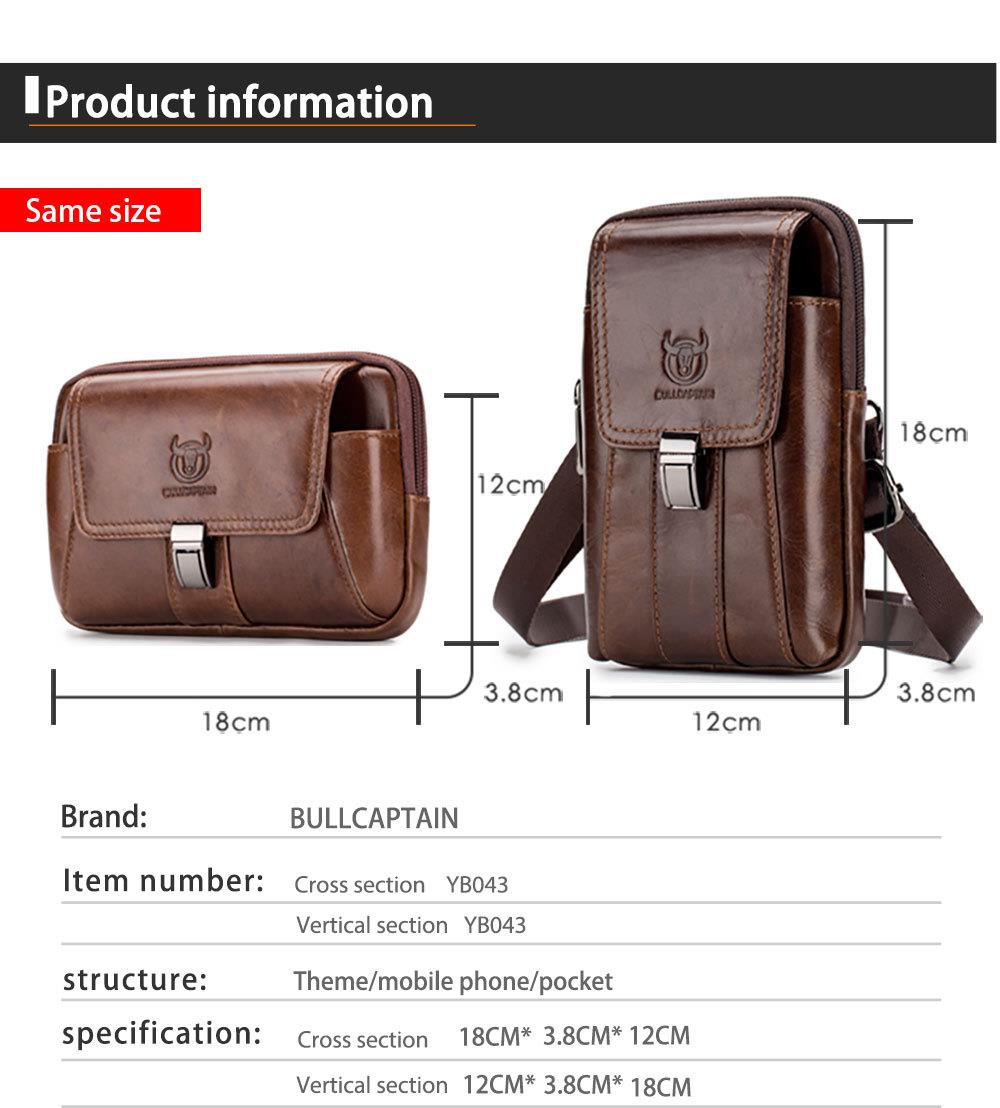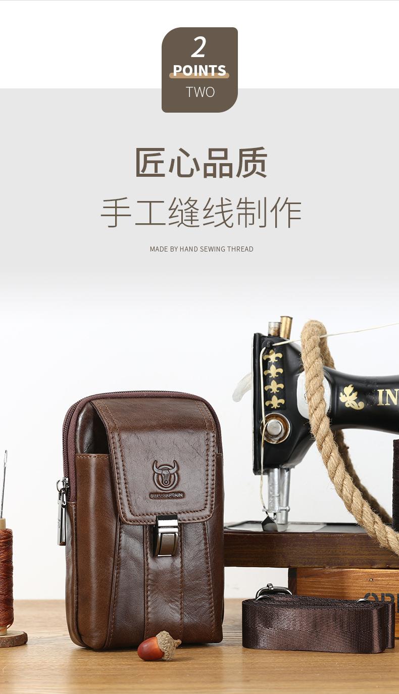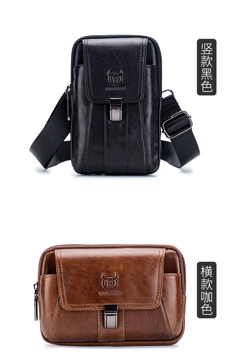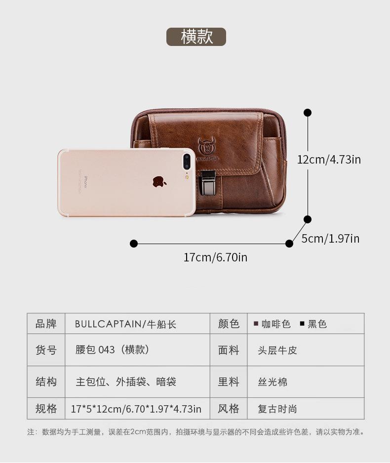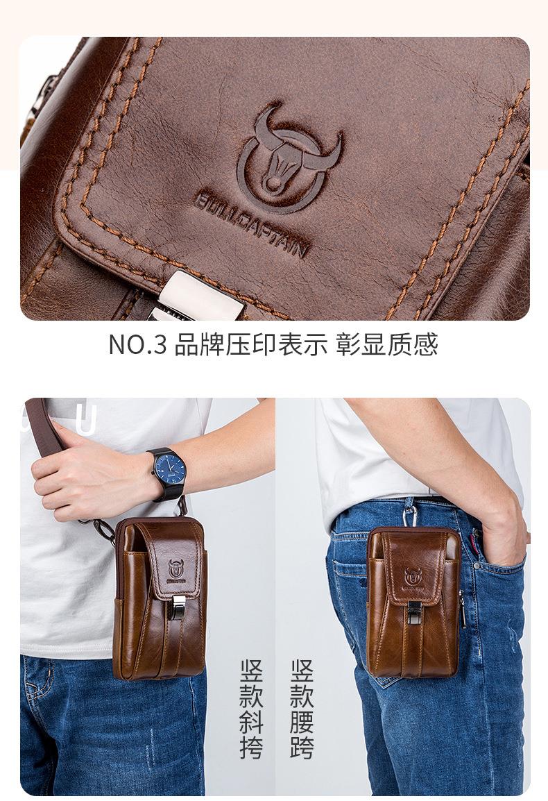 牛船长BULLCAPTAIN 手机小腰包男士多功能头层牛皮横竖款穿腰带包