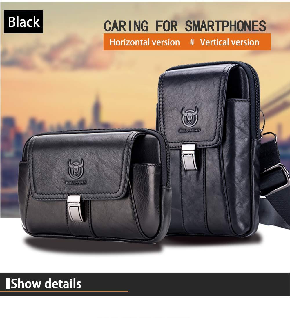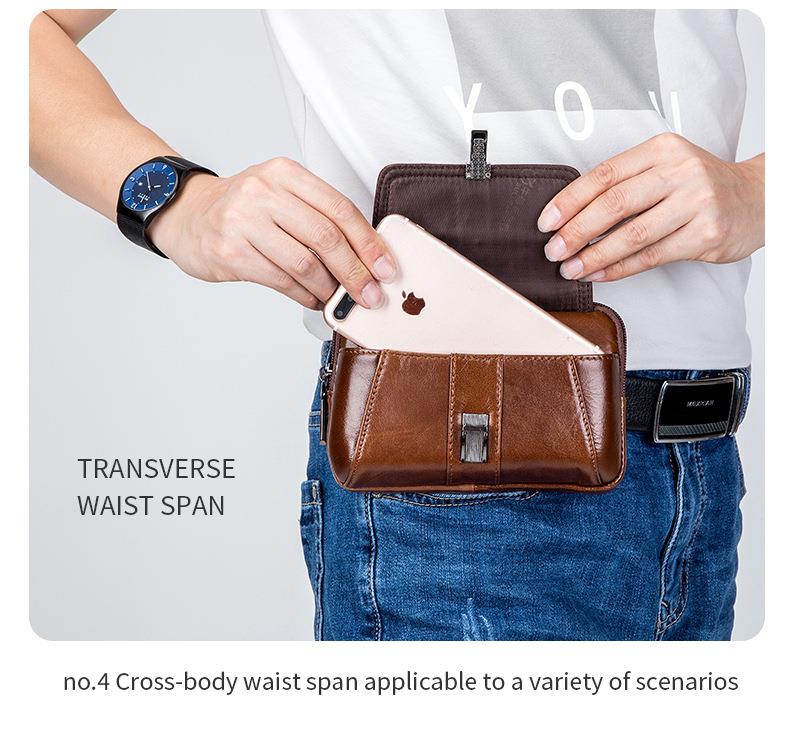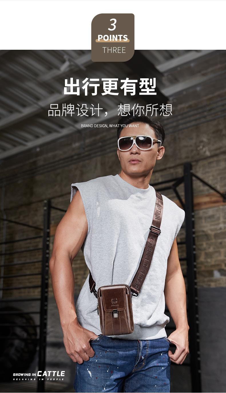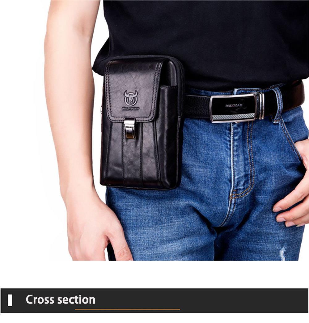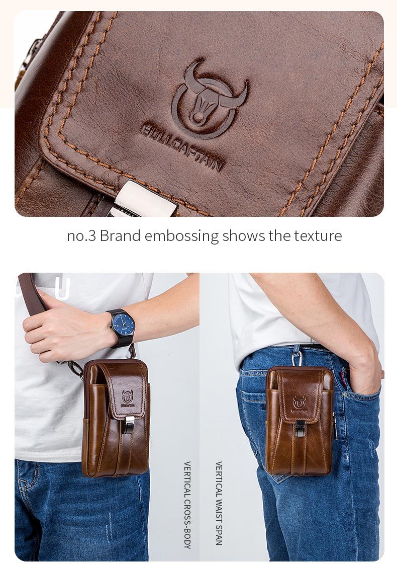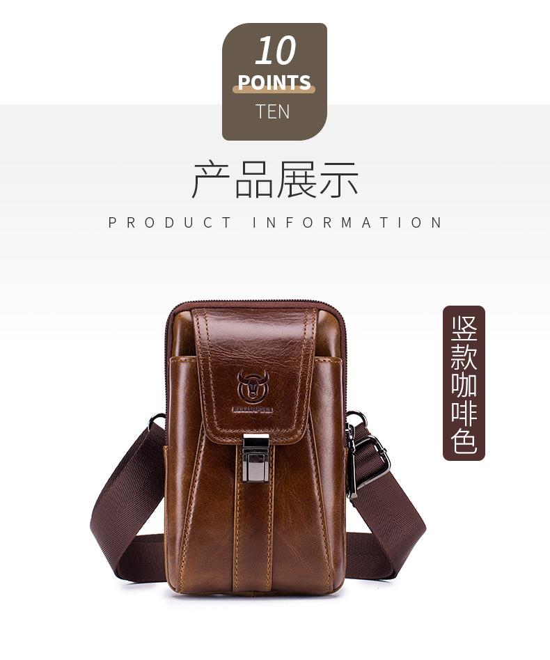 牛船长BULLCAPTAIN 手机小腰包男士多功能头层牛皮横竖款穿腰带包