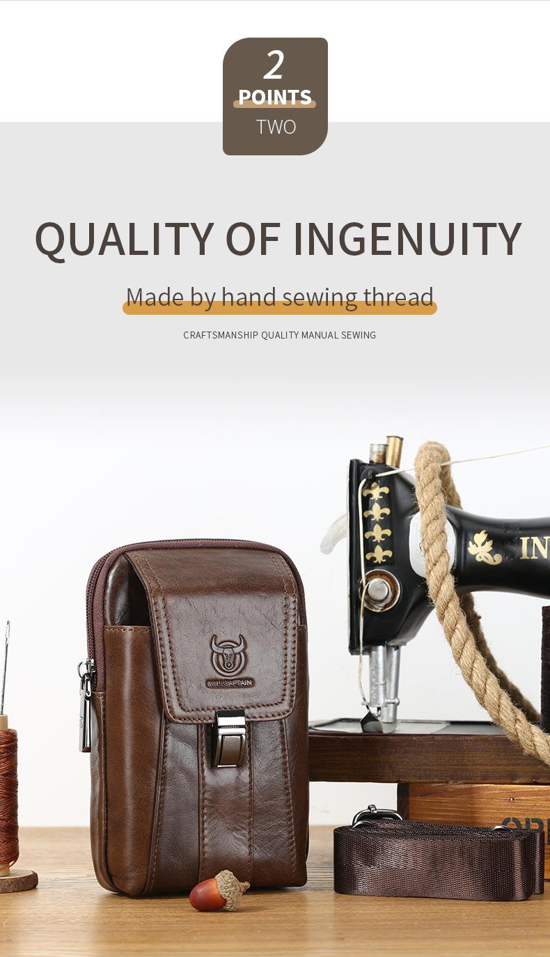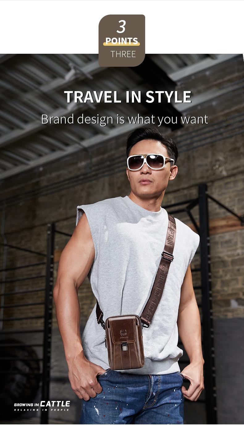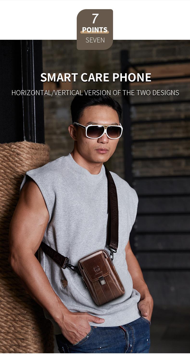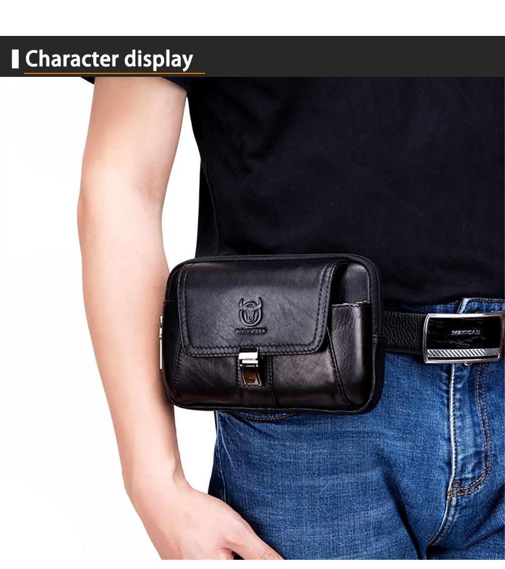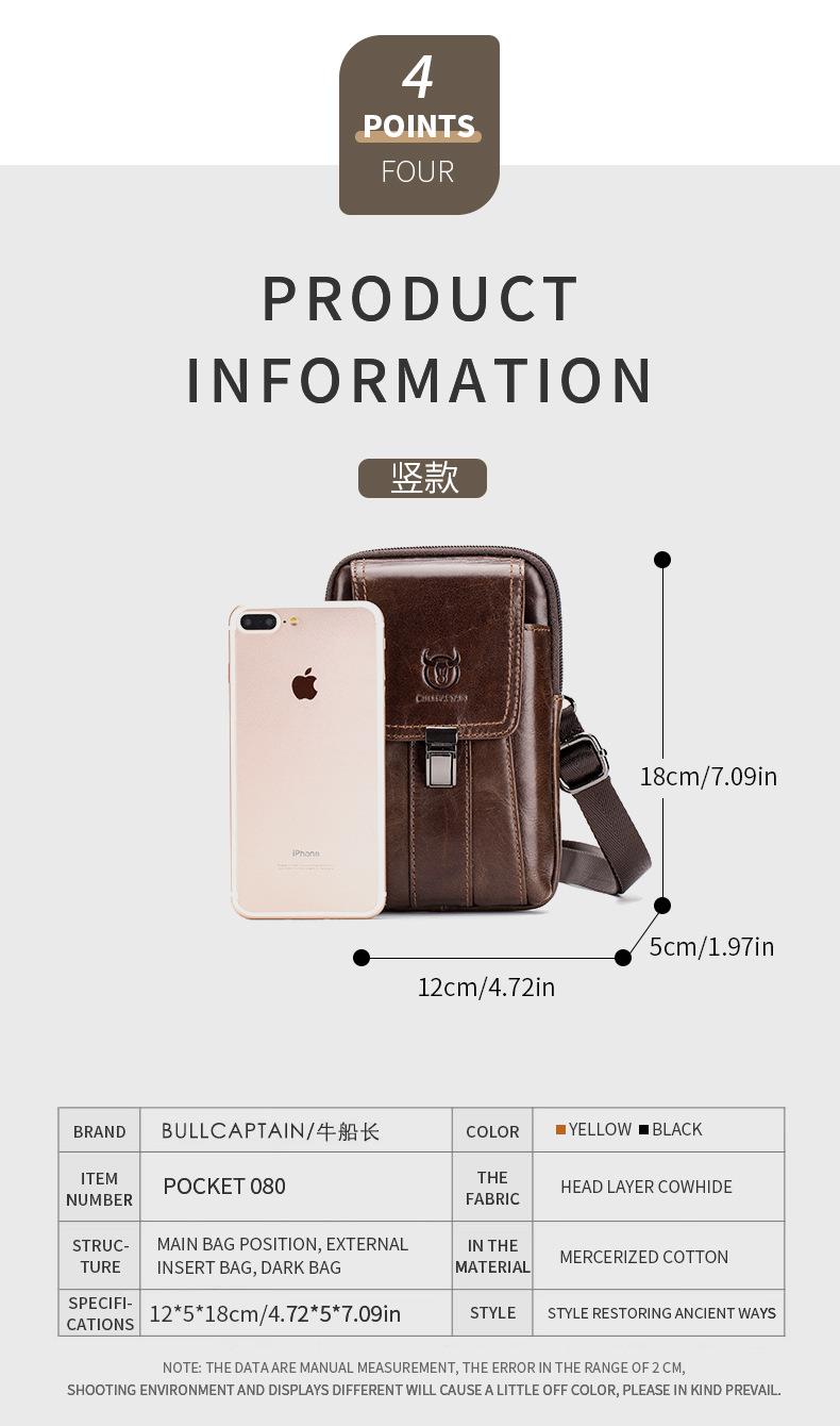 牛船长BULLCAPTAIN 手机小腰包男士多功能头层牛皮横竖款穿腰带包