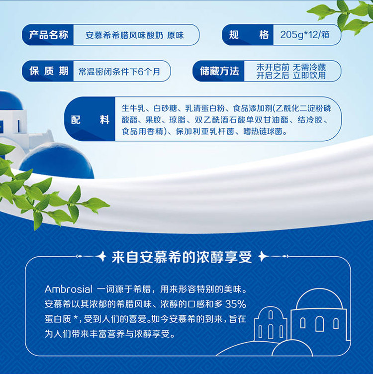 安慕希 安慕希 希腊风味原味酸奶 205g*12盒