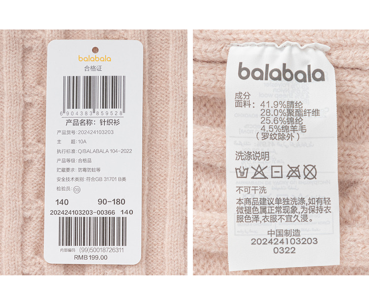 巴拉巴拉童装儿童毛衣男女童秋冬打底针织衫百搭上衣舒适时尚纯色