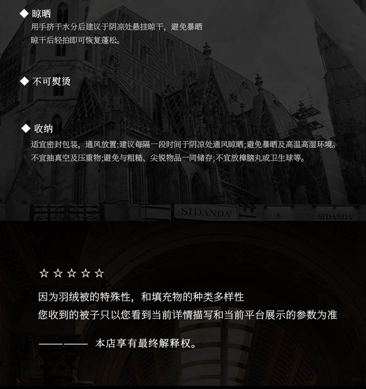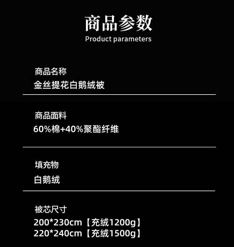 【品名】恒源祥 高端静音鹅绒被 精选腹部大朵绒 立体填充 被面静音 1件充绒量相当于8件羽绒服 抵御西伯利亚的严寒(单被子) 【规格】 柔赛丝面料款: 160*200cm 充绒量:800g 200*230cm 充绒量:1200g 220*240cm 充绒量:1500g 金丝提花面料款: 200*230cm 充绒量:1200g 220*240cm 充绒量:1500g 【产地】国内 【发货包装】独立包装 【发货地】江苏 【发货快递】极兔、韵达、邮政随机发 【不发货区域】新疆、西藏、港澳台 【发货时效】48-72小时,周末节假日顺延 |
