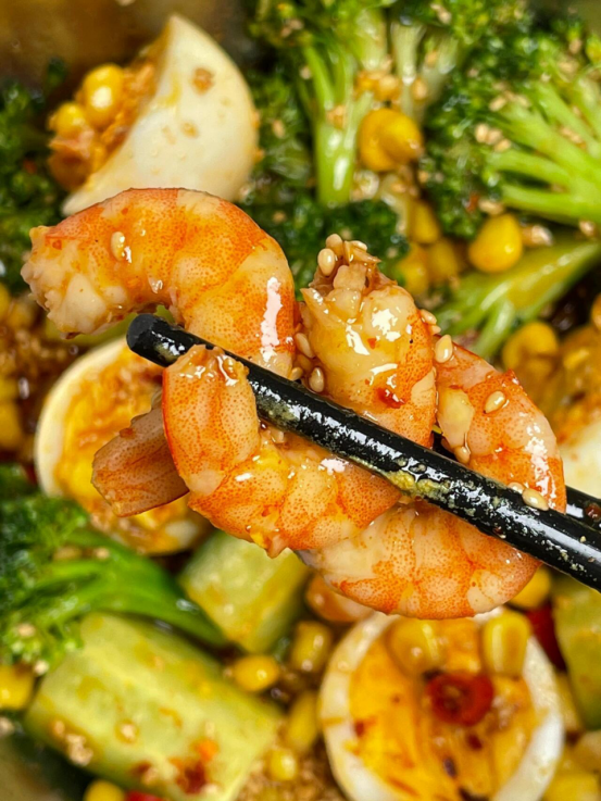 【凉拌鲜虾】 把虾仁煮熟后,加入鲜香馋的酸辣汁,拌上一份鲜虾,真的开胃了,蛋白质足足的! 入口酸酸辣辣,凉凉爽爽,入口轻轻咀嚼,汁水爆发,虾肉Q弹,一口一个停不下来!