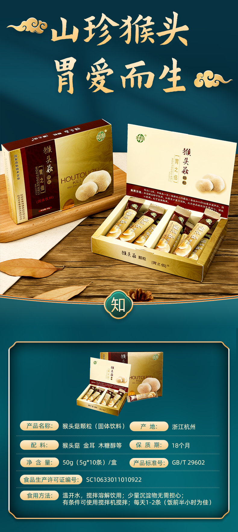 【2盒减40,4盒立减80!】胃之侣常青园猴头菇颗粒5g*10袋/盒 山珍猴头 甄选好原料 0蔗糖养胃佳品 老少皆宜