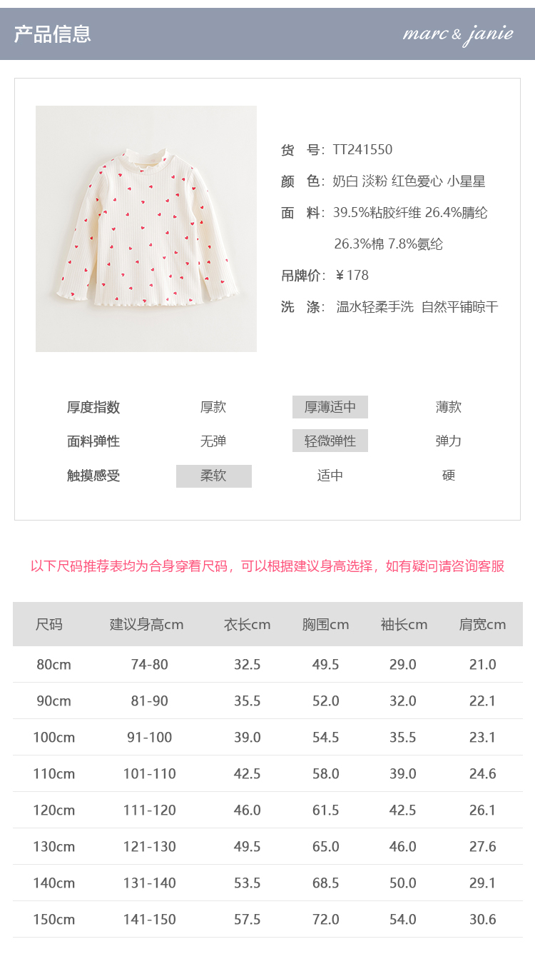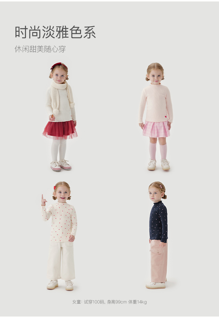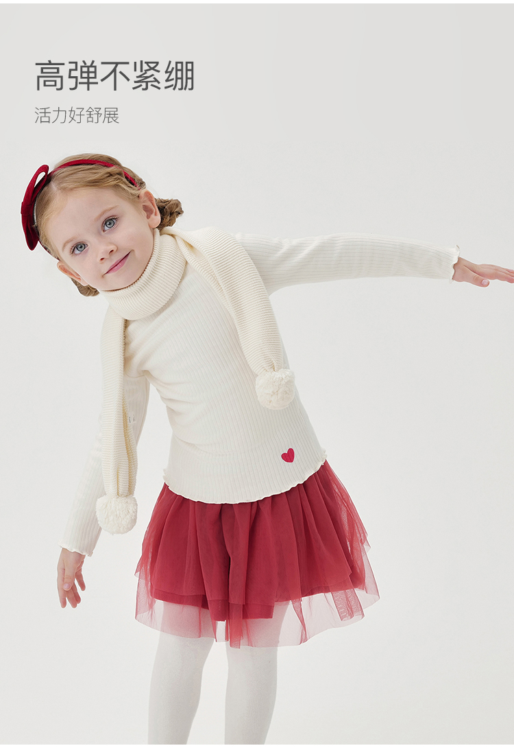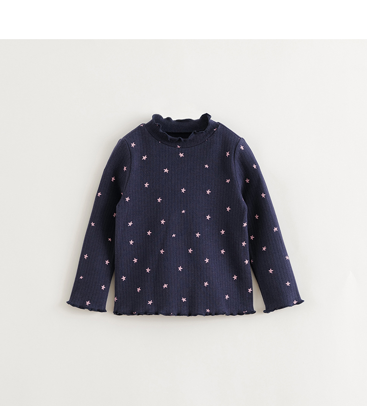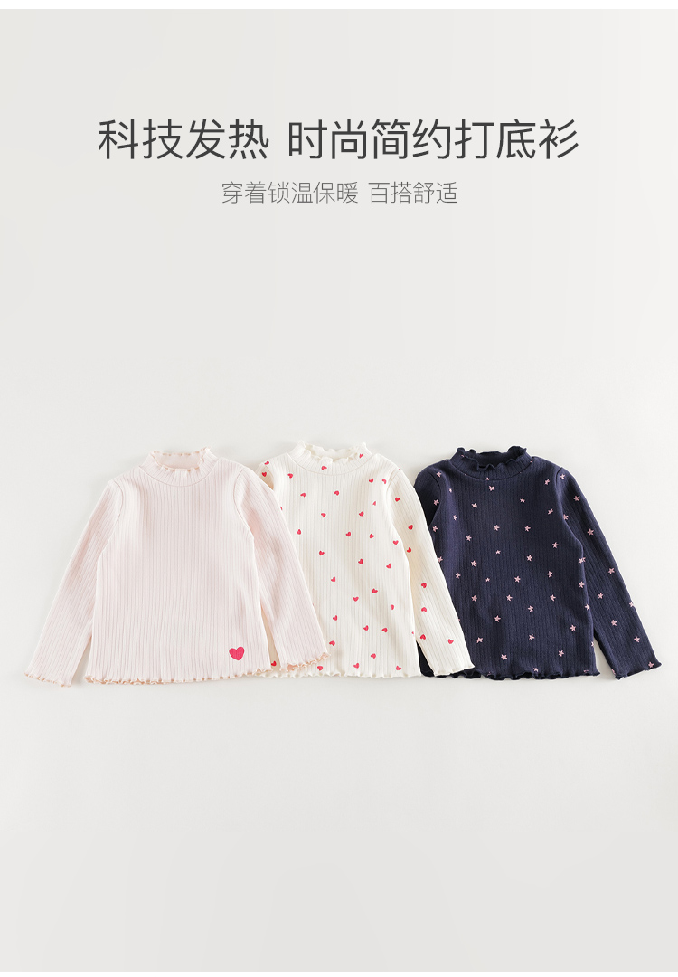 [德绒发热]马克珍妮女童半高领打底衫儿童印花保暖T恤冬装241550