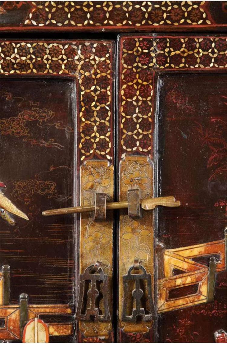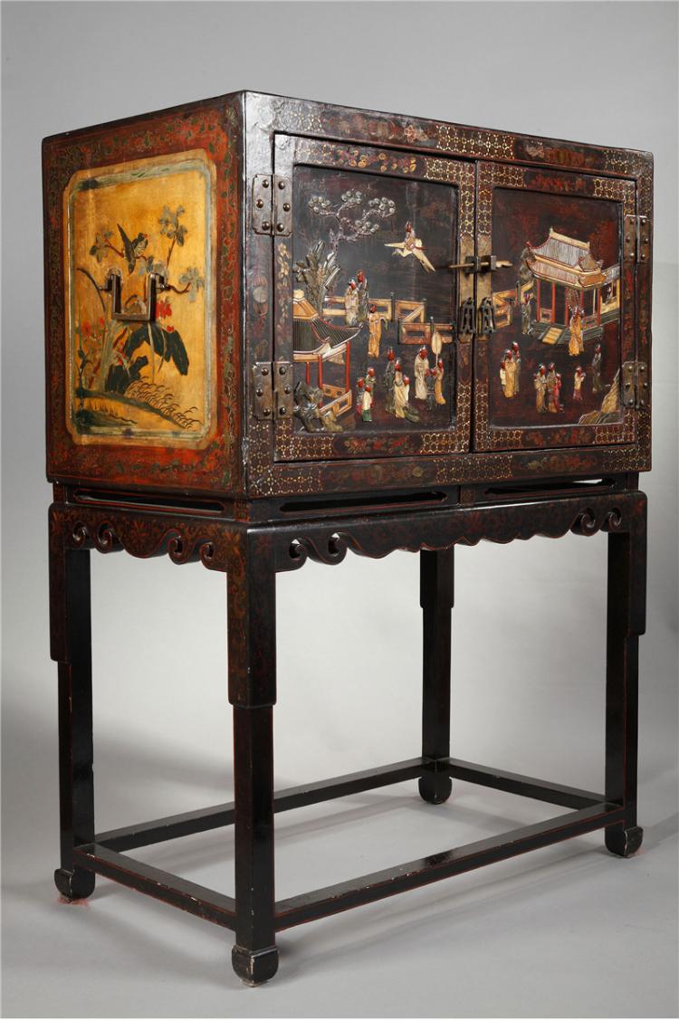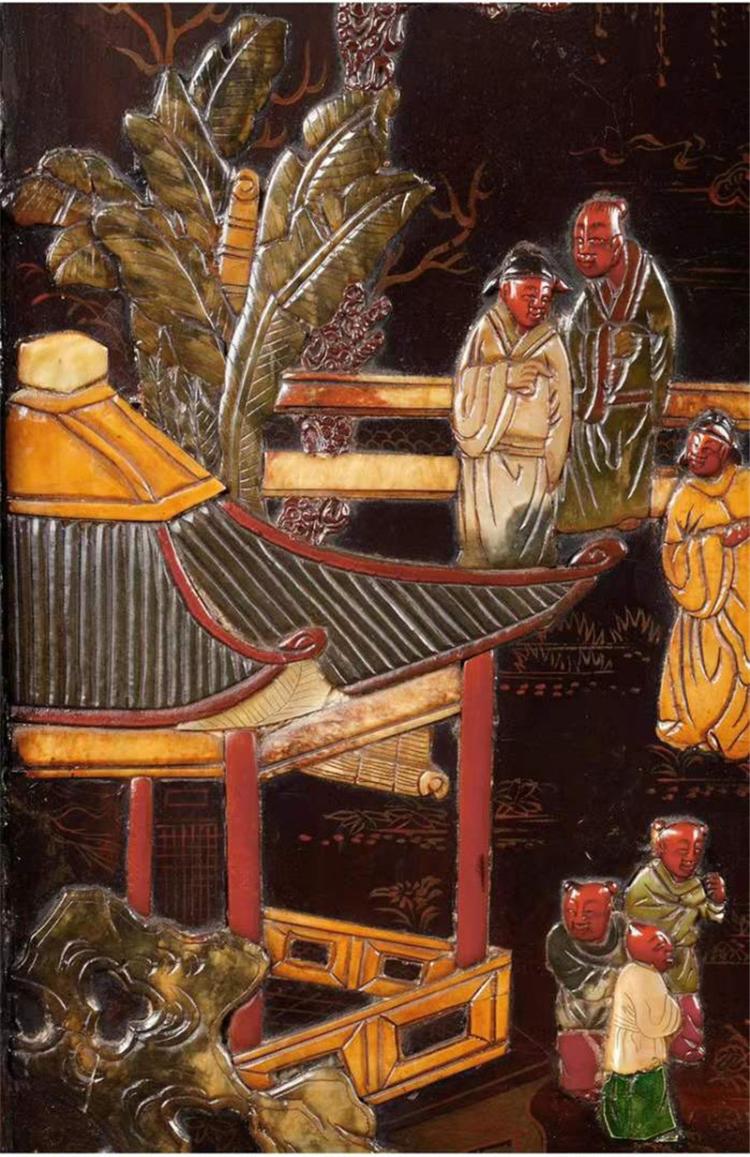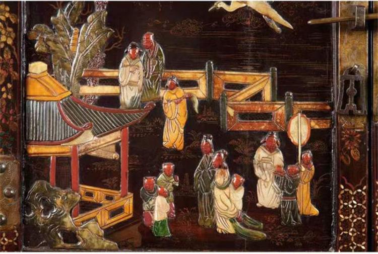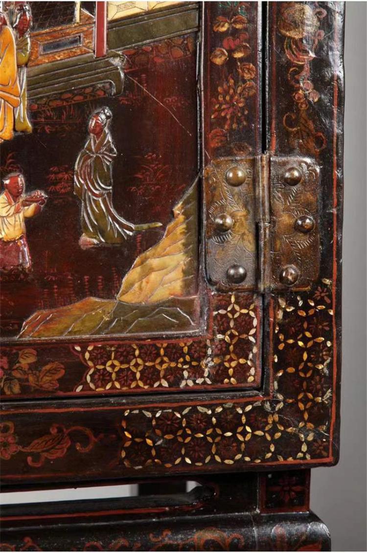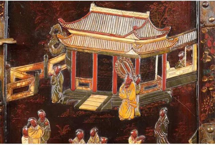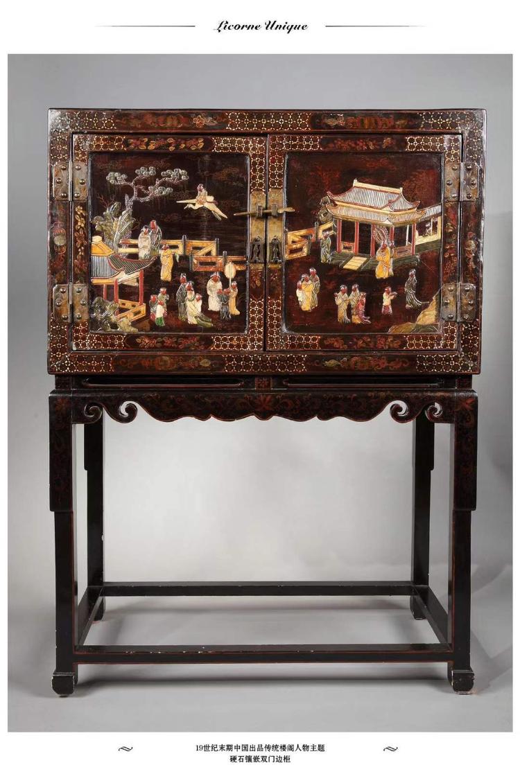 独角鹿西洋古董家具中国出品传统楼阁人物主题硬石镶嵌双门边柜