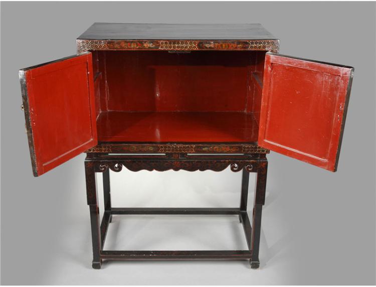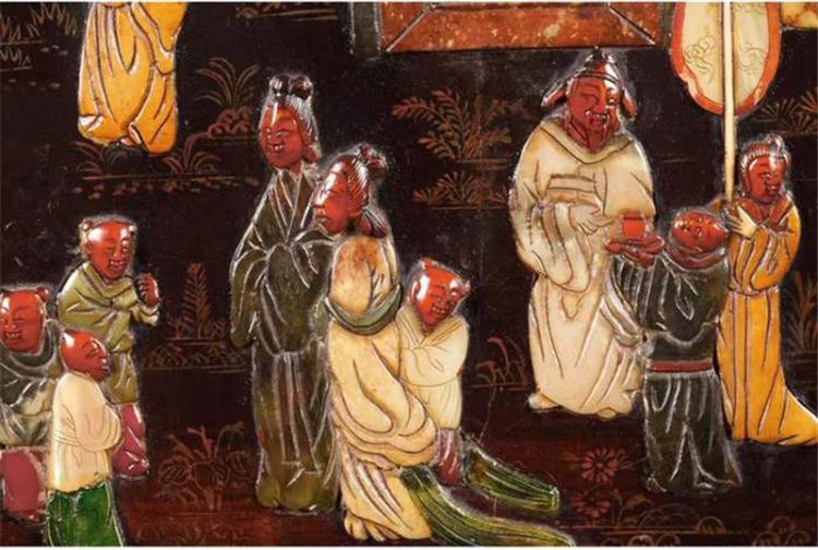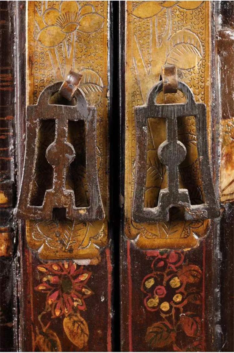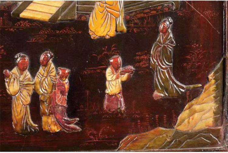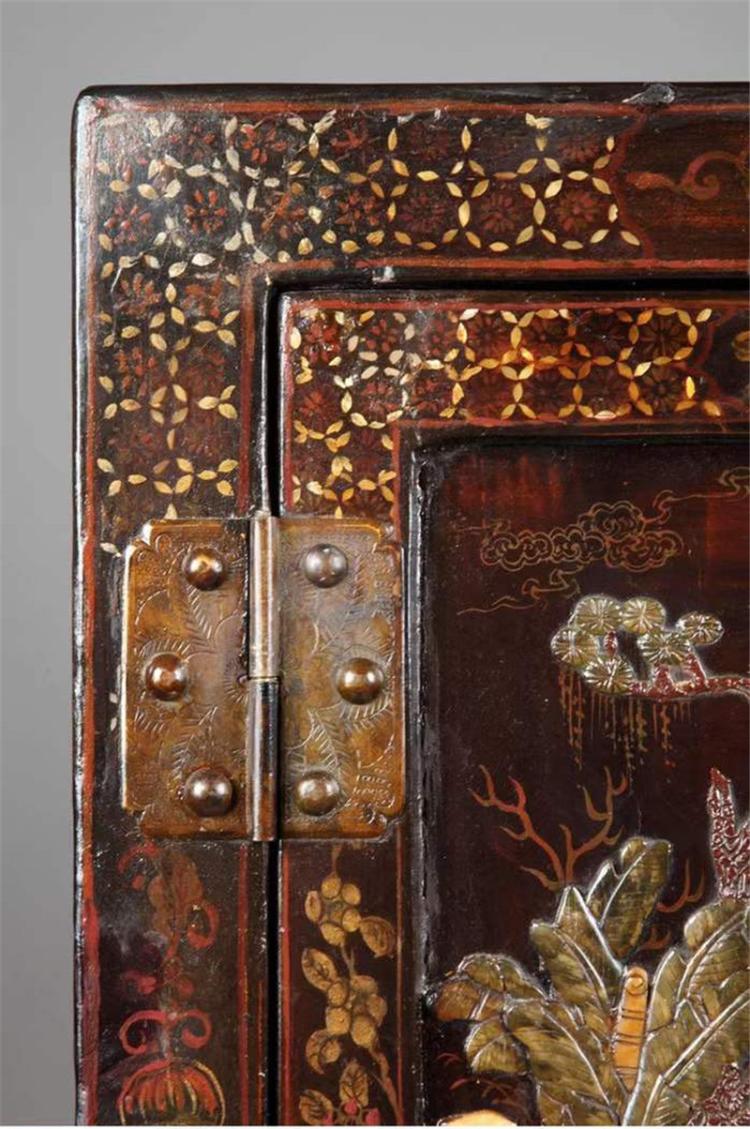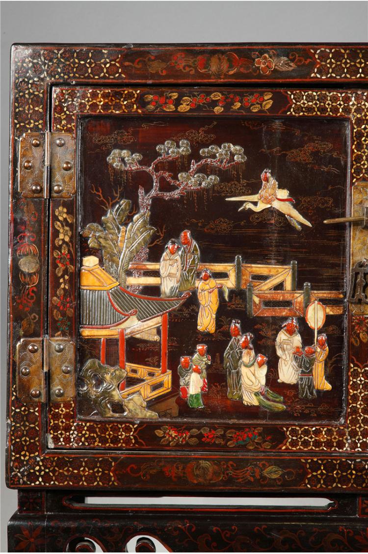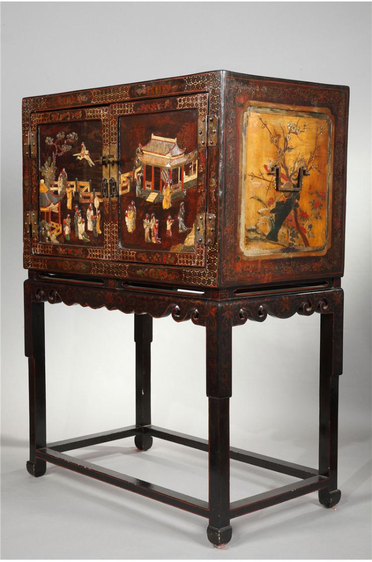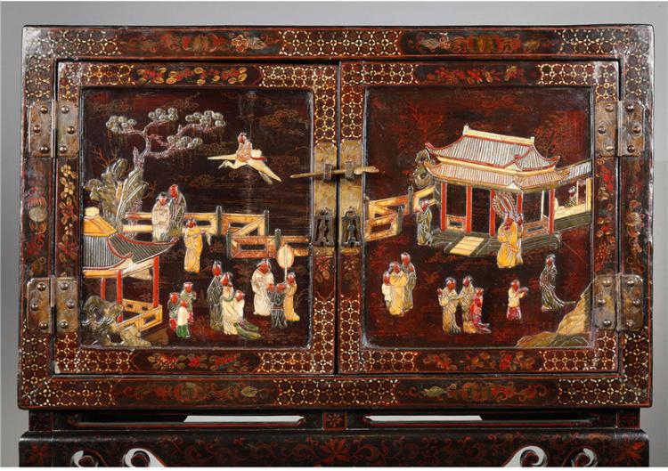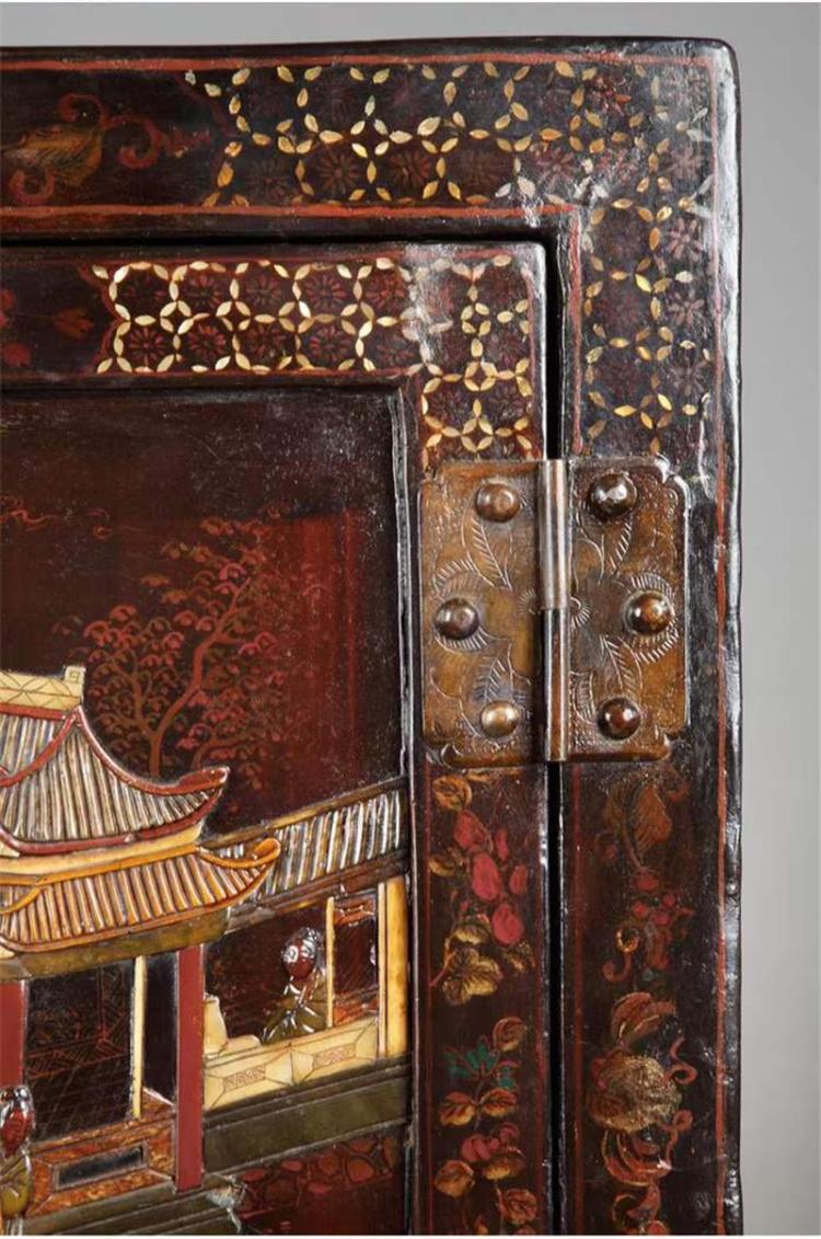 独角鹿西洋古董家具中国出品传统楼阁人物主题硬石镶嵌双门边柜