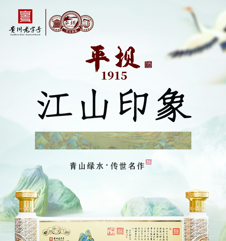 热卖中!!【72年贵州老字号】平坝1915·江山印象53度酱香型白酒1.5kg(赠礼箱包装+4个品鉴杯)