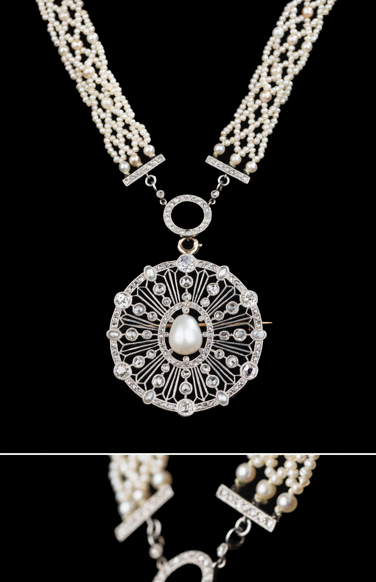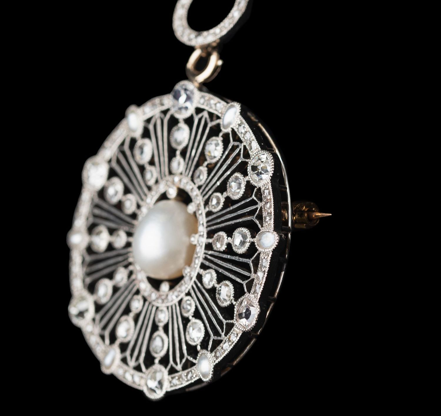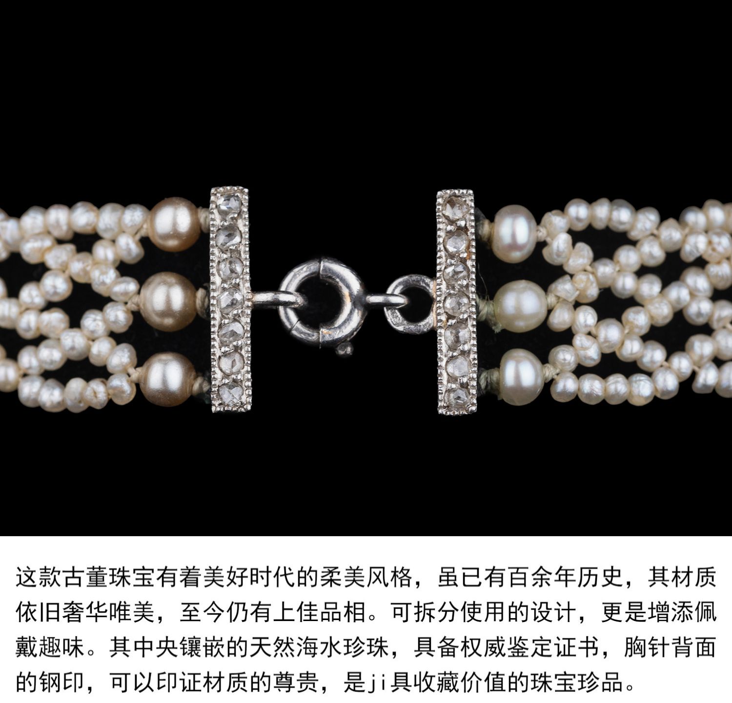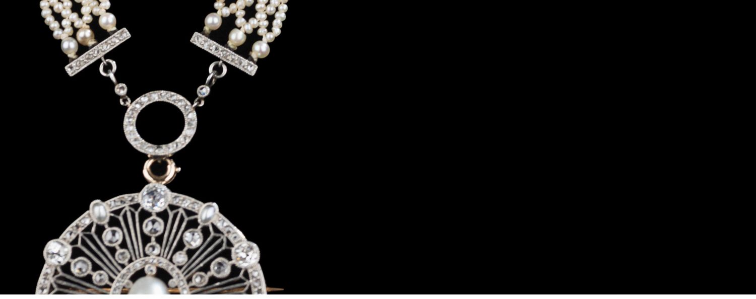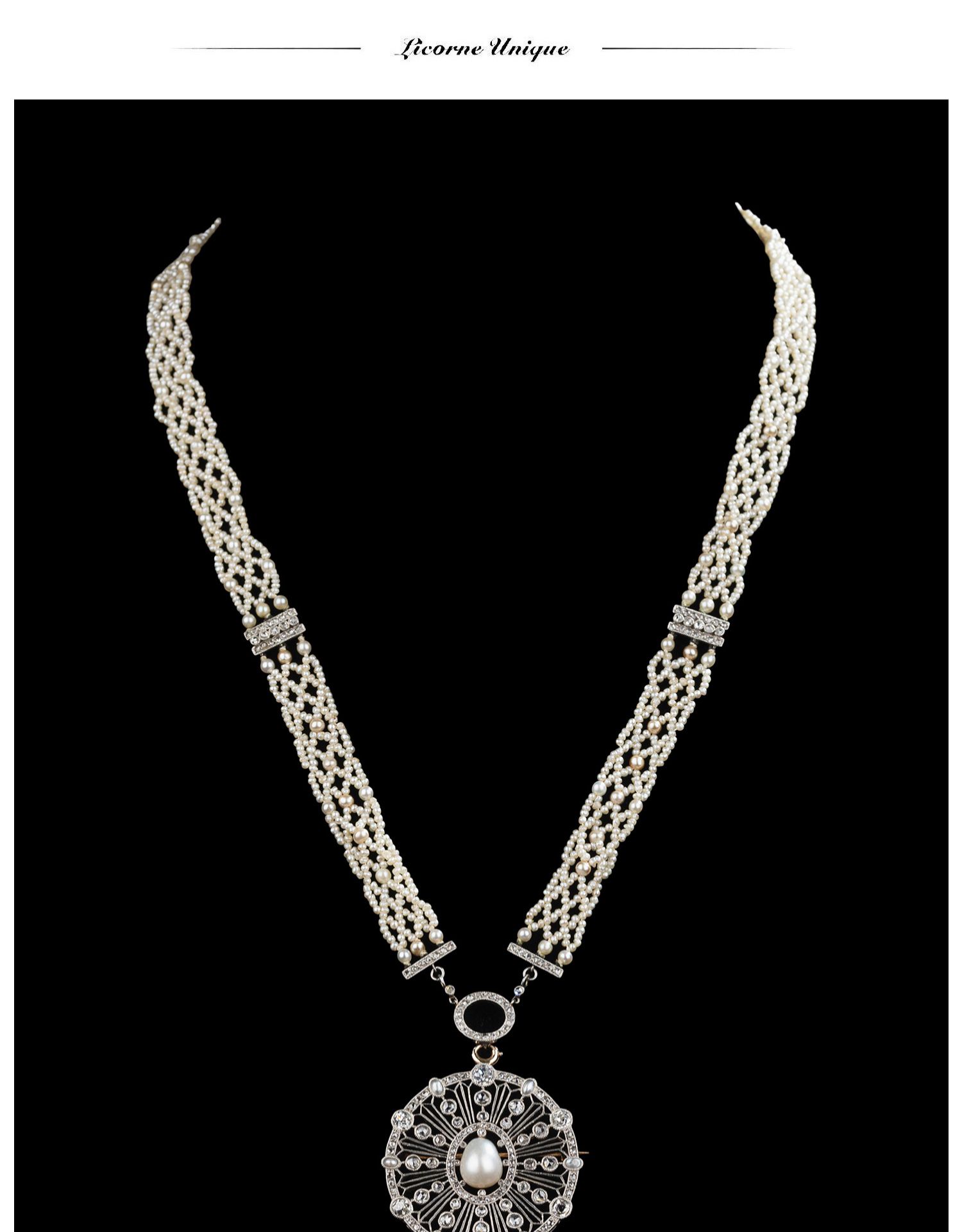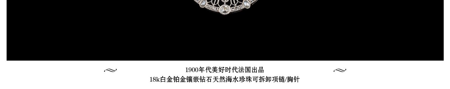 独角鹿西洋古董首饰美好时代18k白金铂金钻石天然珍珠项链胸针