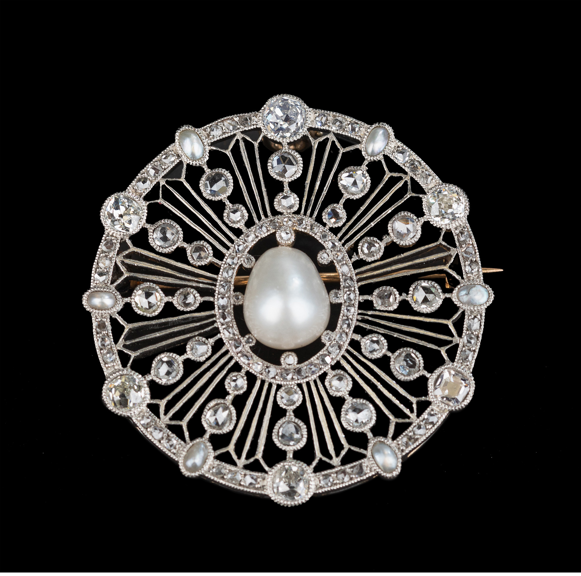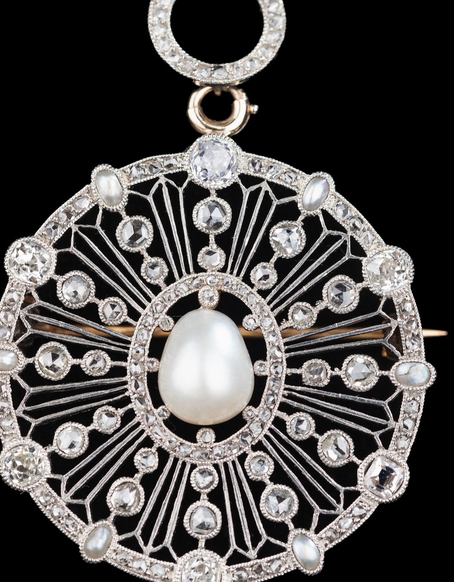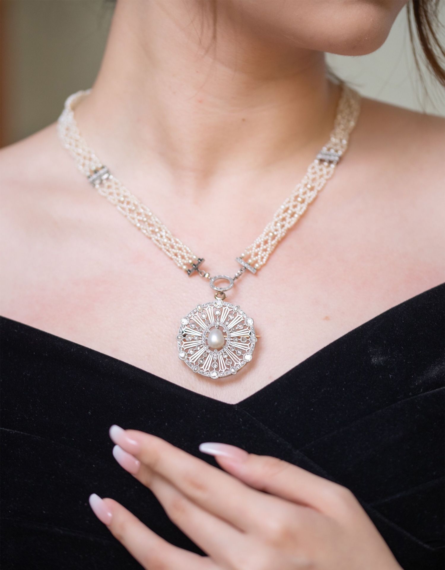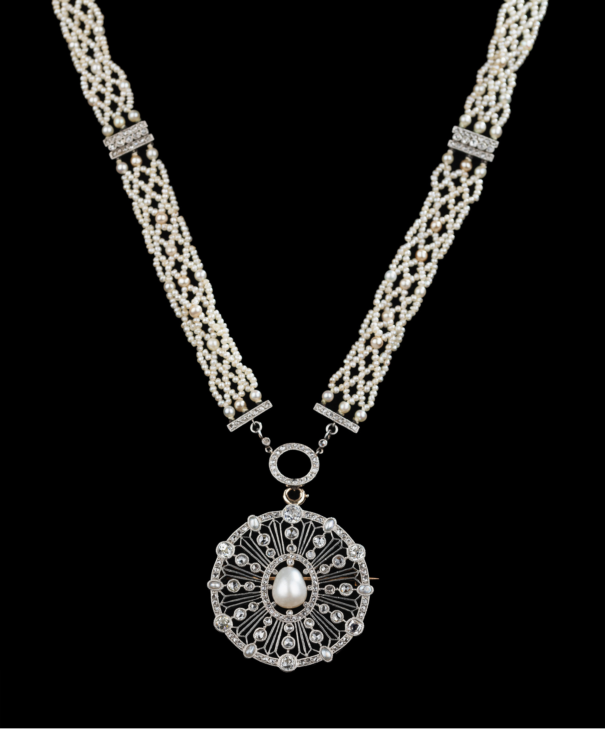 独角鹿西洋古董首饰美好时代18k白金铂金钻石天然珍珠项链胸针