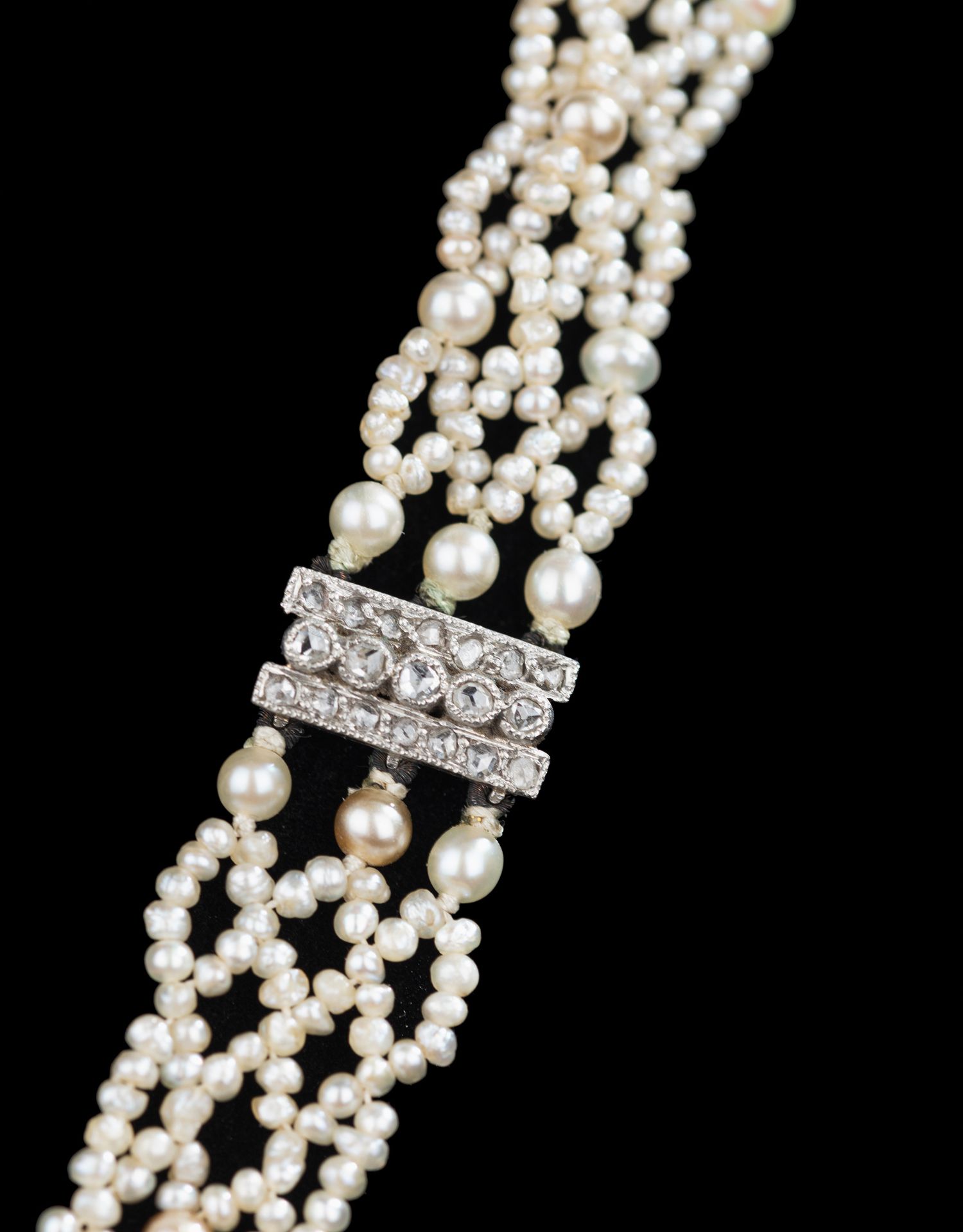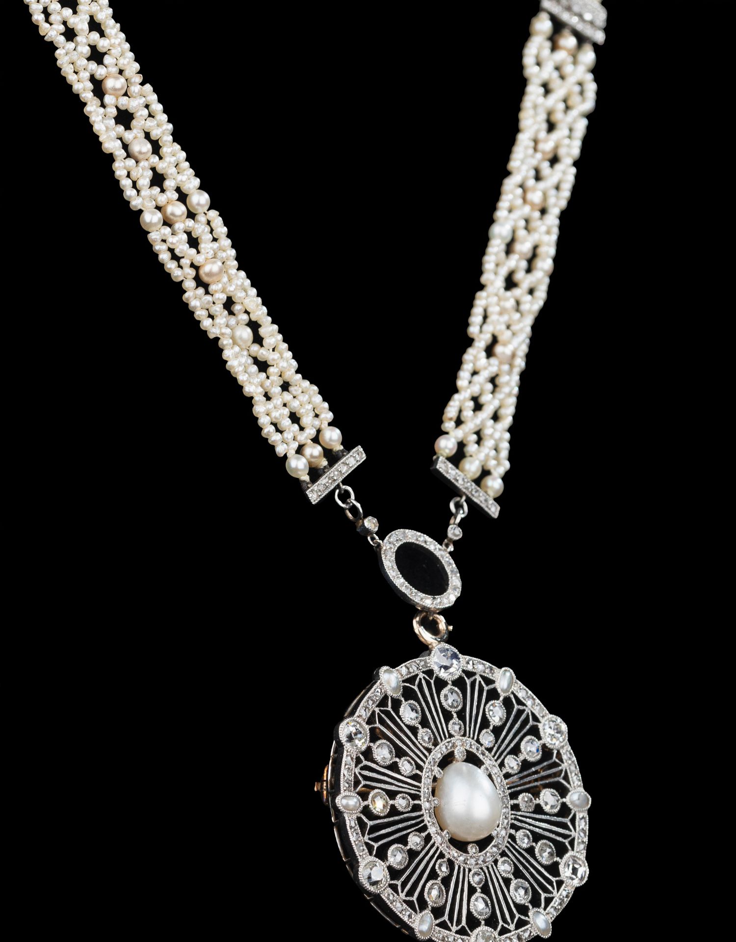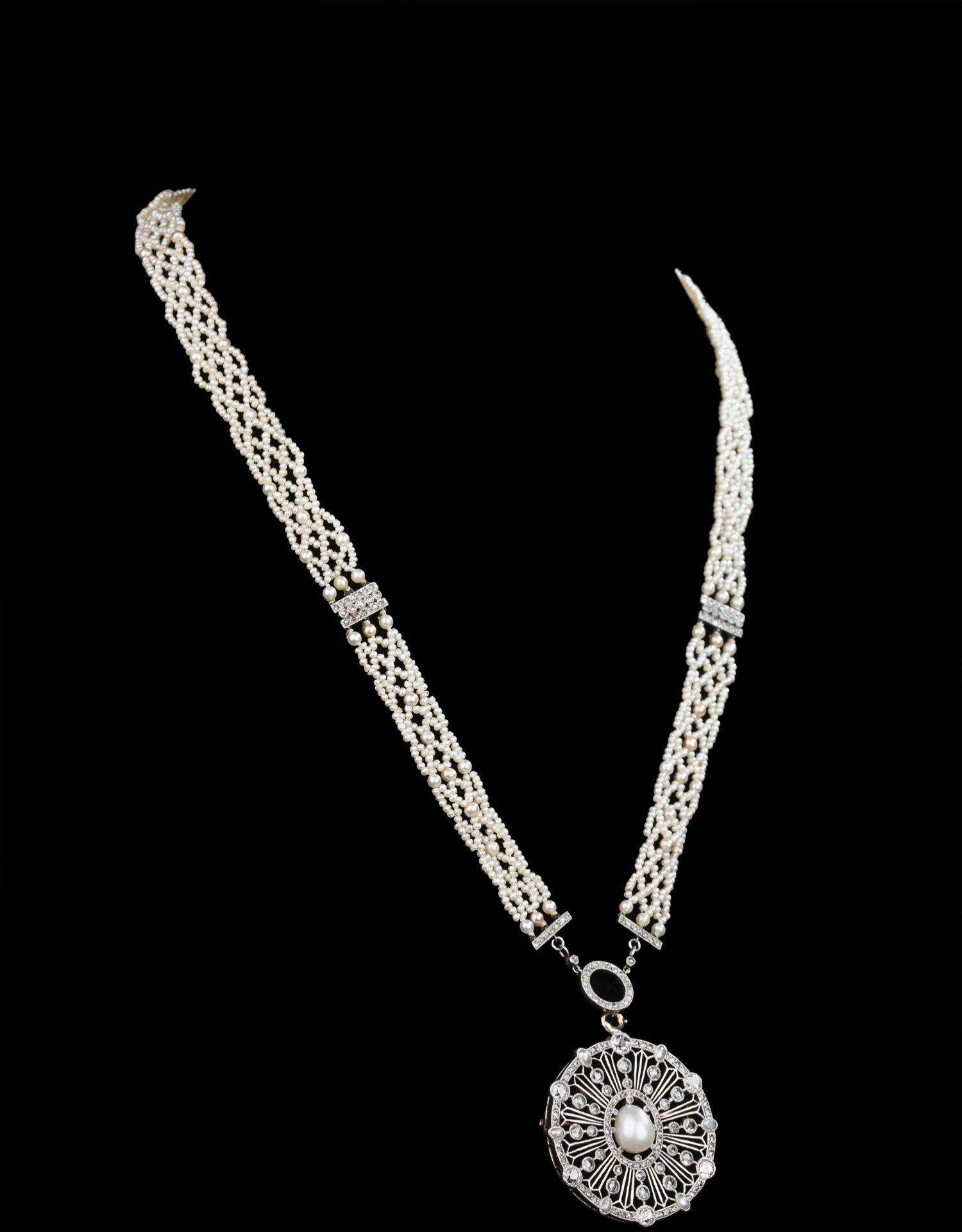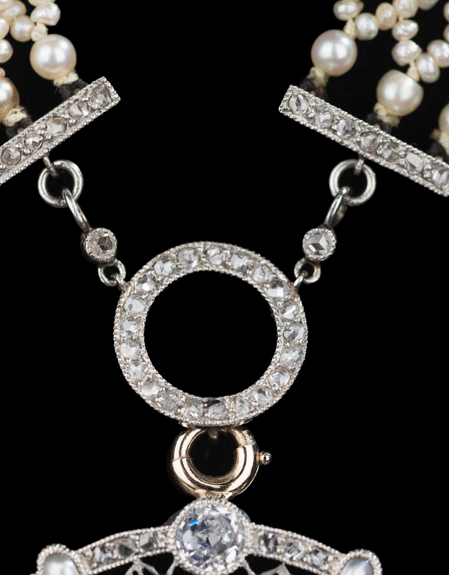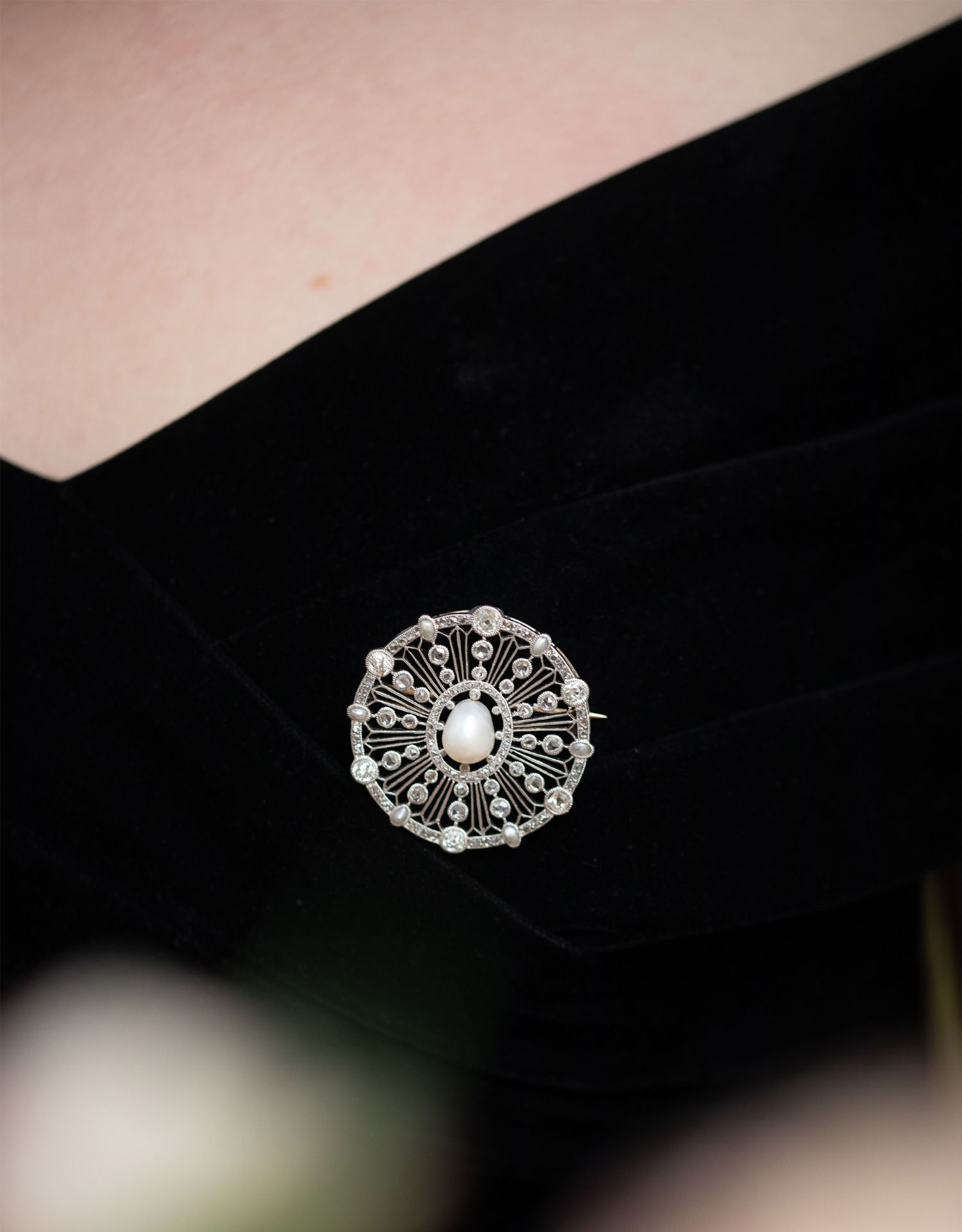 独角鹿西洋古董首饰美好时代18k白金铂金钻石天然珍珠项链胸针