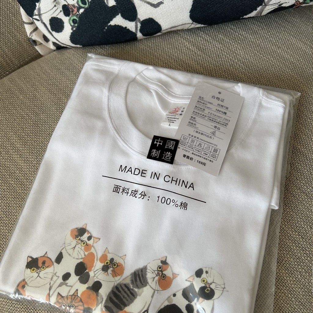 薛继业水墨猫230G重磅新疆长绒棉长袖 短袖白T恤纯男女圆领t桖