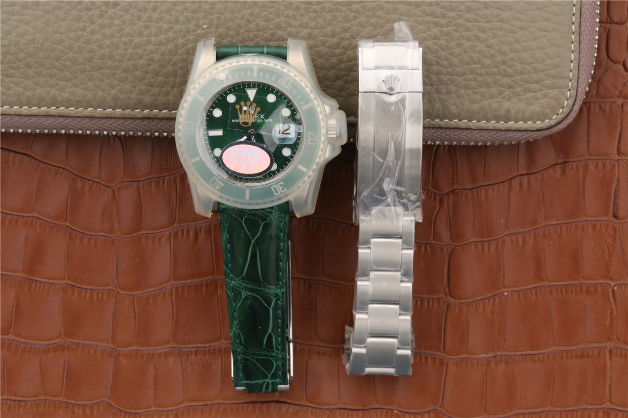 N劳力士V8和V8S版绿水鬼鳄鱼皮潜航者系列116610LV绿鬼,V8S表壳身和表带都采用了和专柜一致的904L钢材