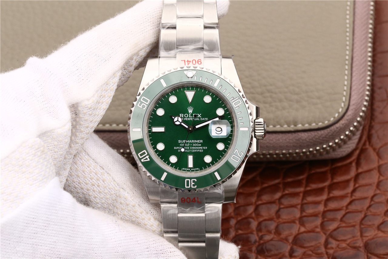 N劳力士V8S版绿水鬼(V8S版为904L钢,V8版为316L钢)潜航者系列116610LV鳄鱼皮绿鬼,卖点:1、表壳身和表带都采用了和专柜一致的904L钢材。2、陶瓷圈更曜黑。原装一样的尺寸40x13mm,可选装仿瑞士2836、复刻3135机芯和纯瑞士2836三种机芯,V8S采用进口904L精钢表壳表链,蓝宝石镜面,chao强夜光,折叠扣。