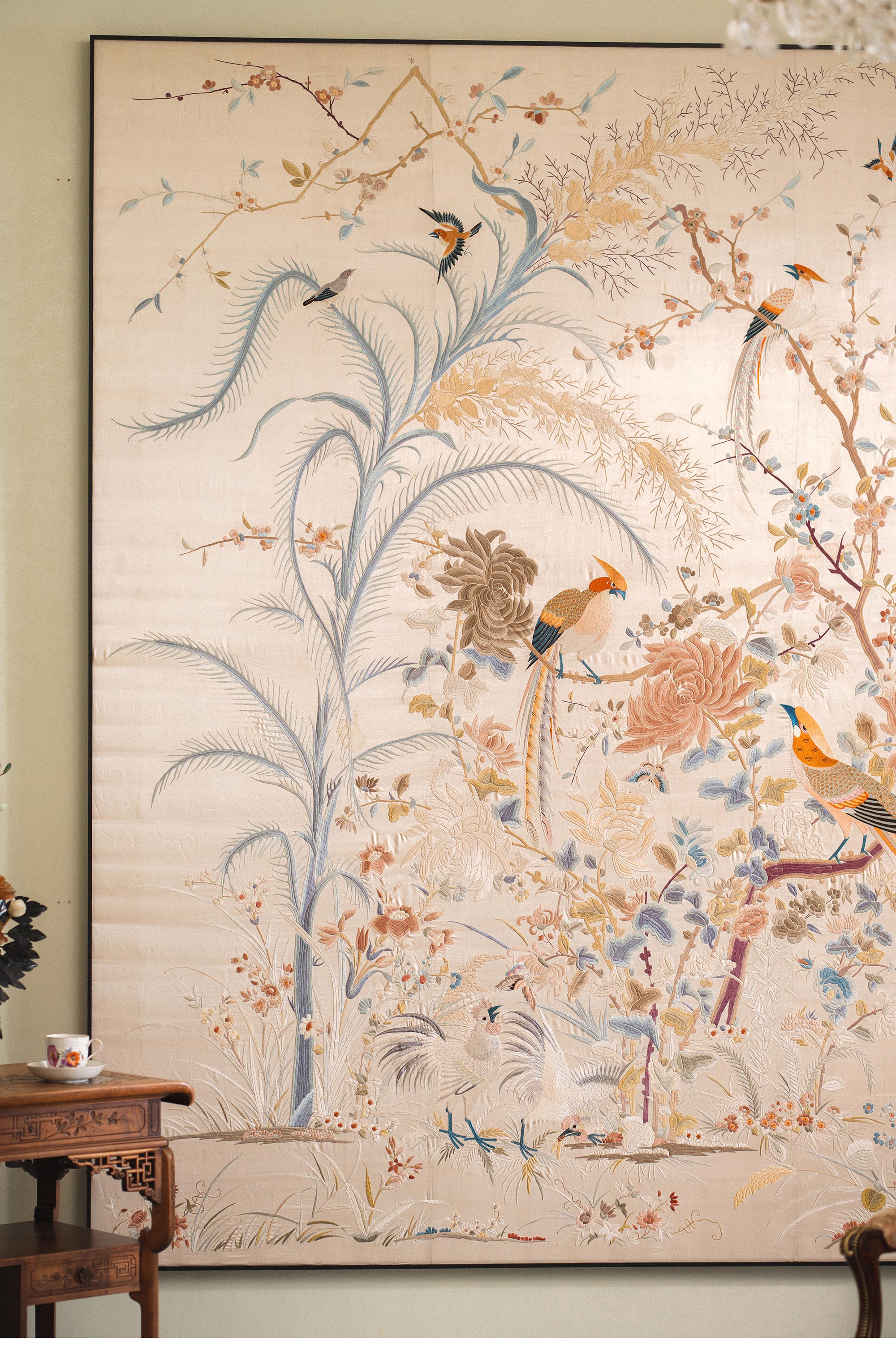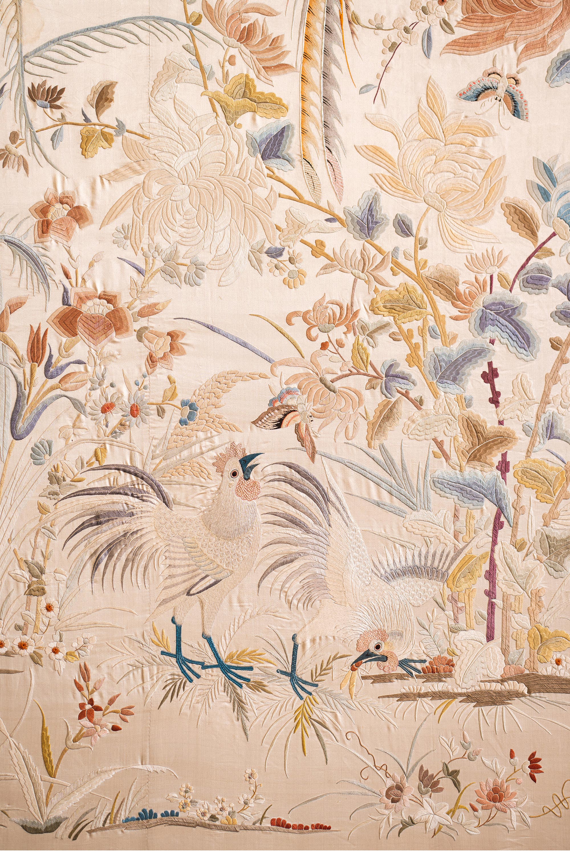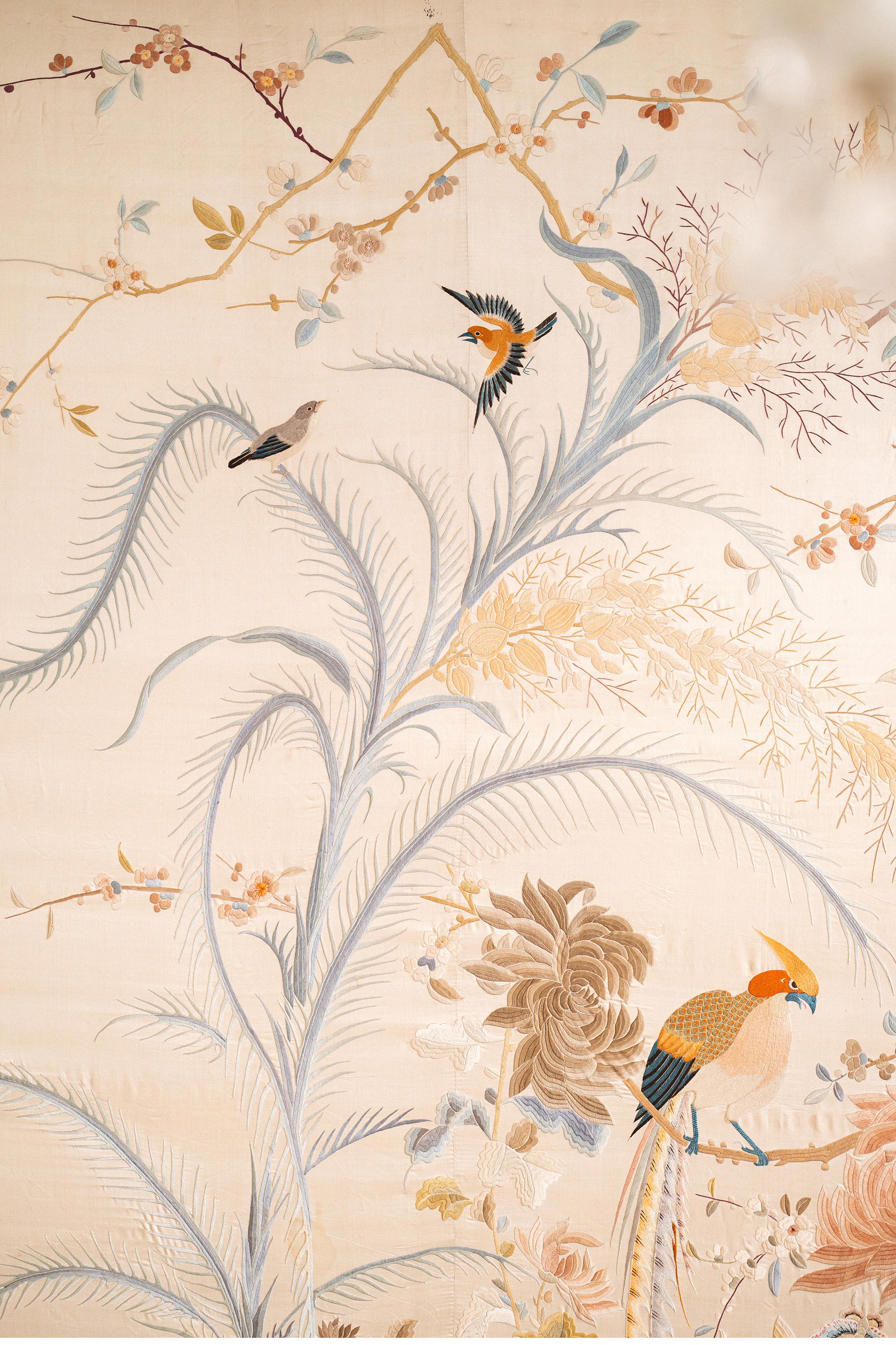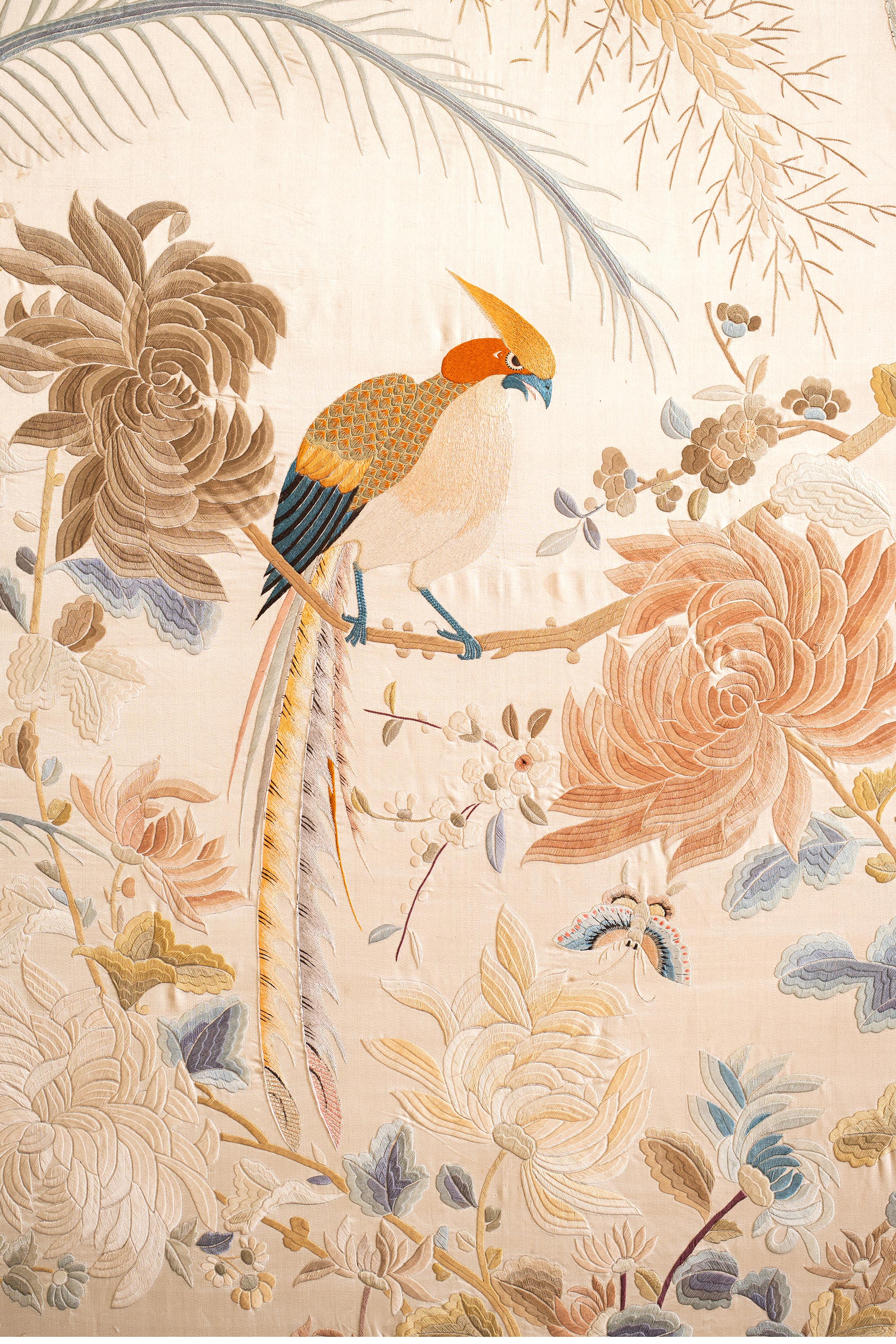 1900年代中国出品「锦上添花」传统东方花鸟主题大型粤绣挂屏