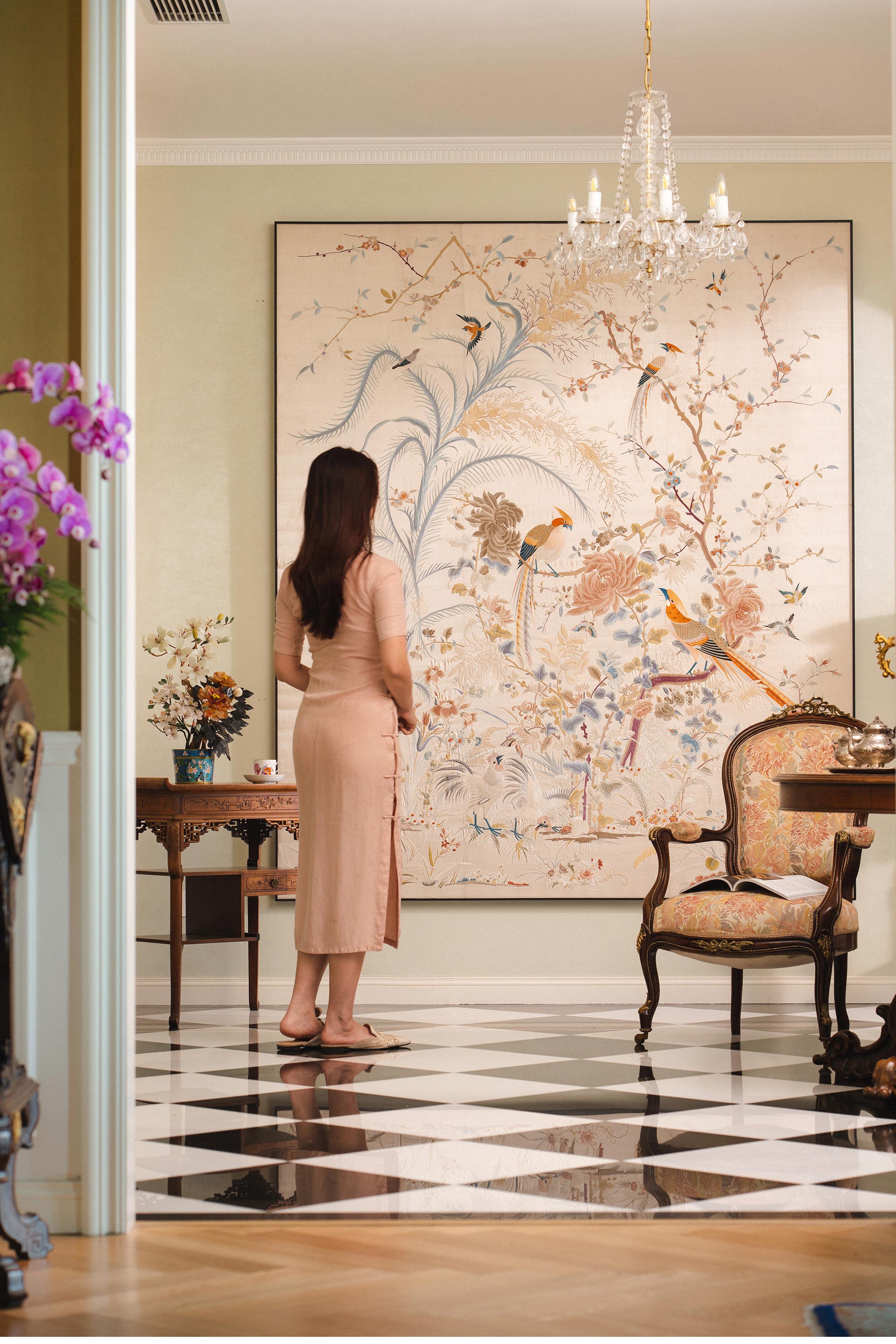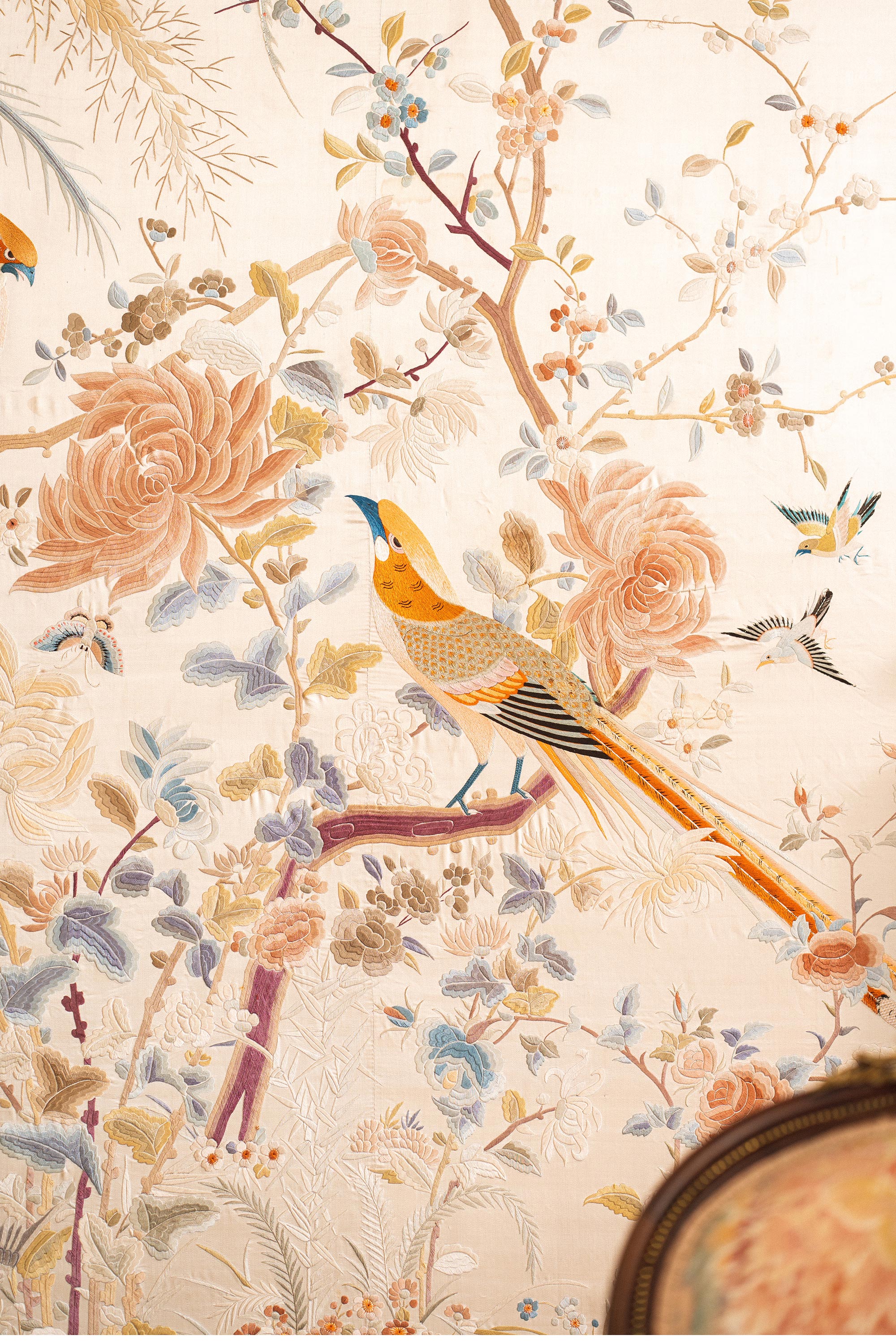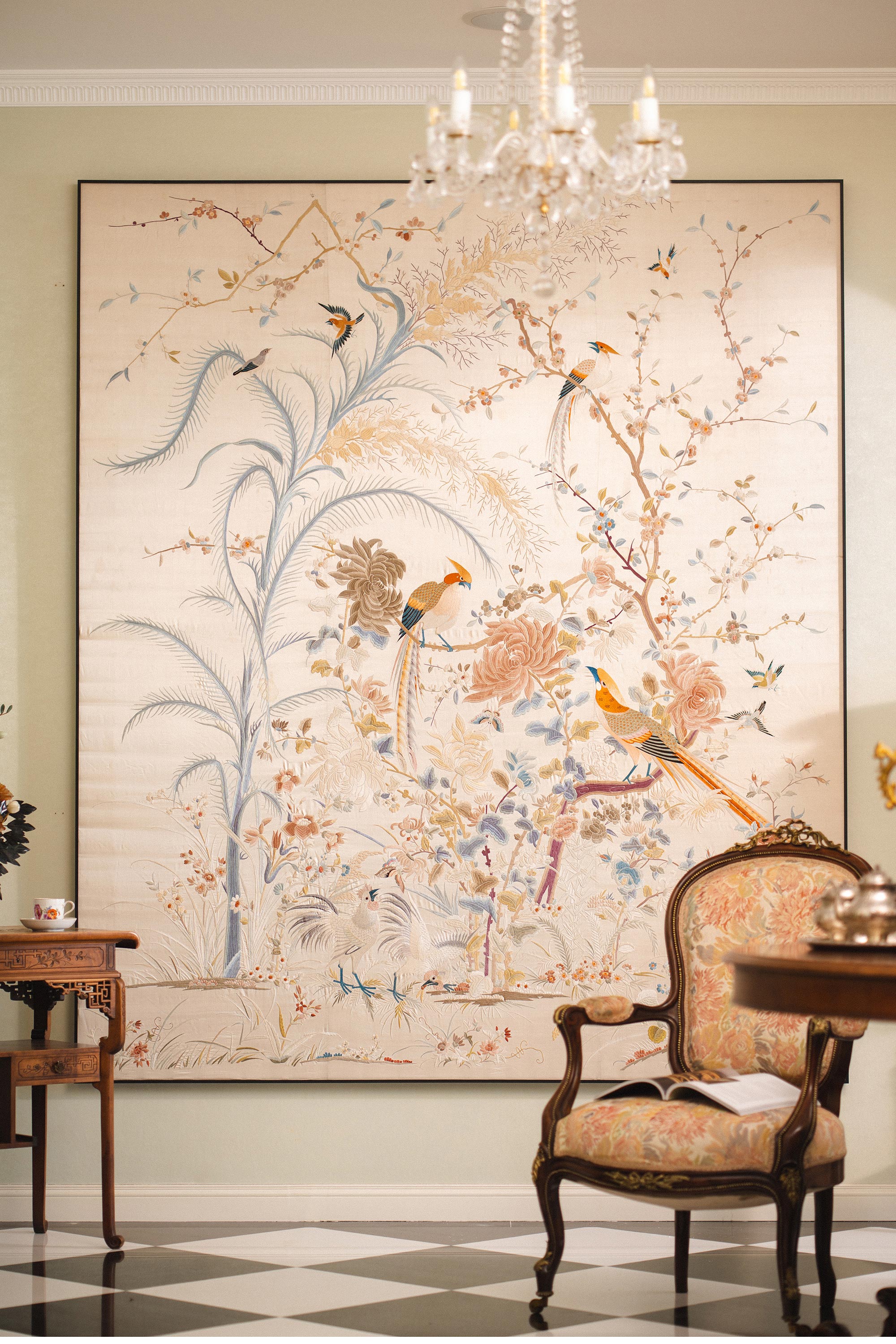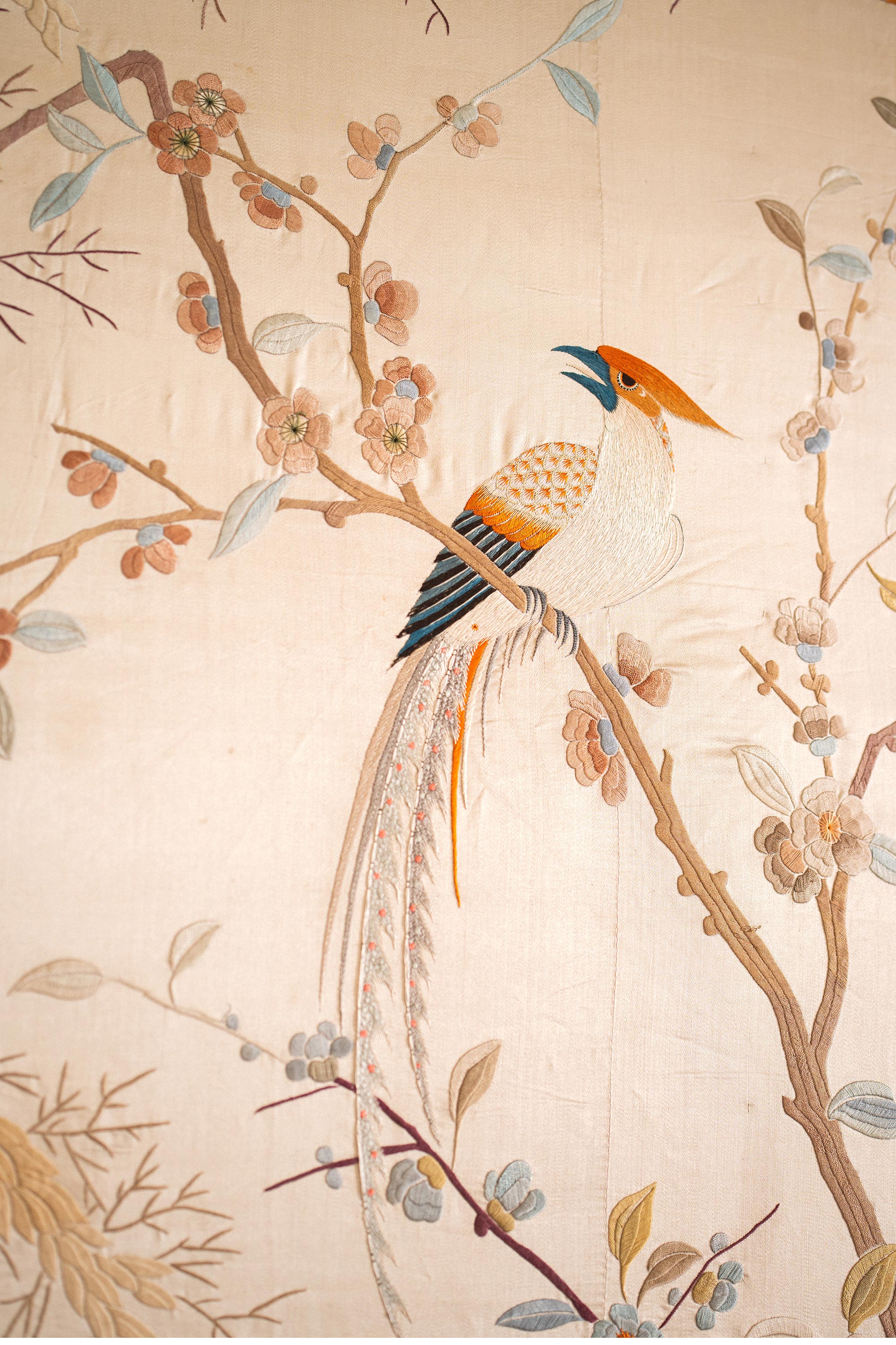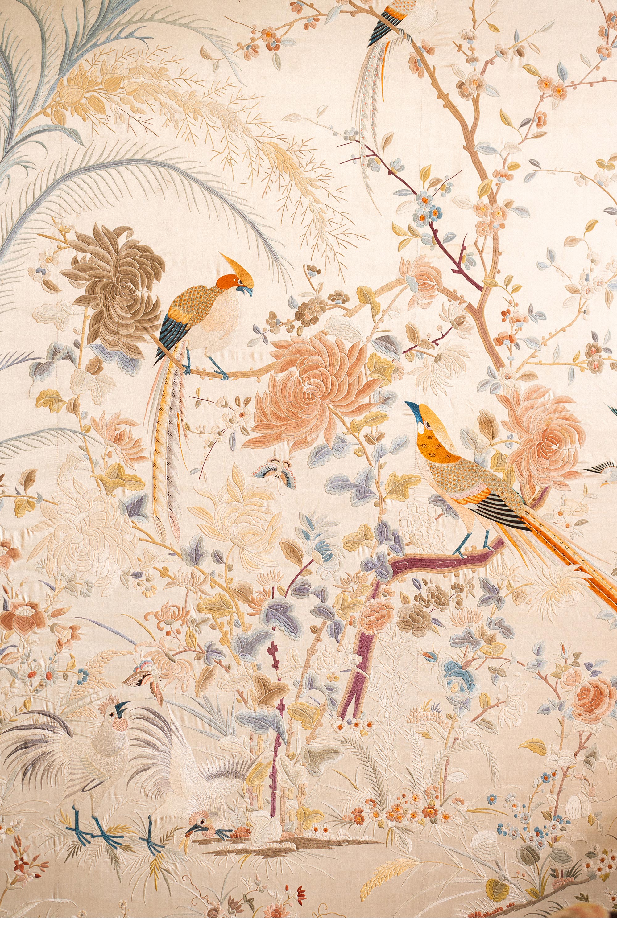 1900年代中国出品「锦上添花」传统东方花鸟主题大型粤绣挂屏