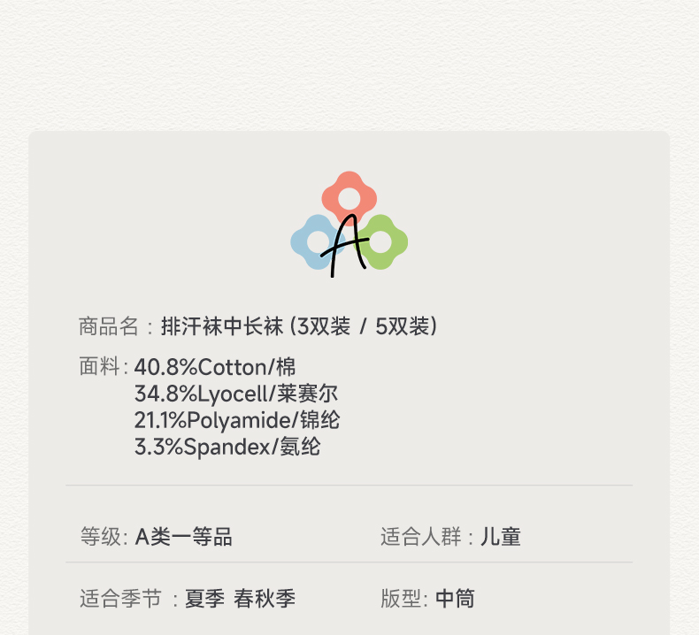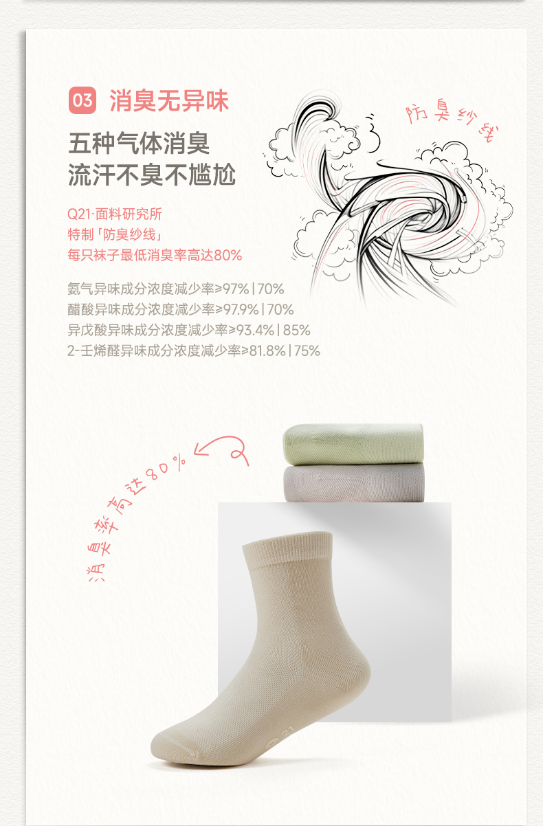 【吸湿排汗防臭】Q21排汗抑菌袜子A类吸湿透气网眼中筒袜