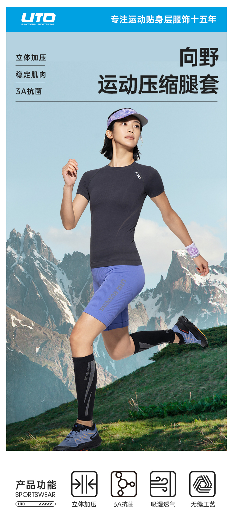 UTO/悠途向野运动跑步篮球压缩腿套紧身长筒高弹夏季户外运动护腿