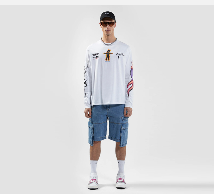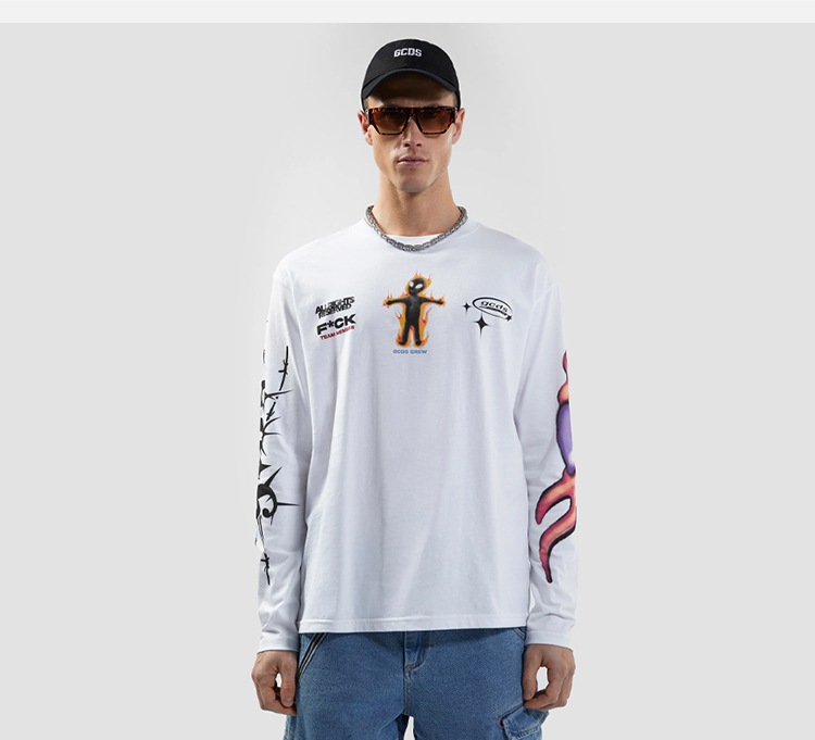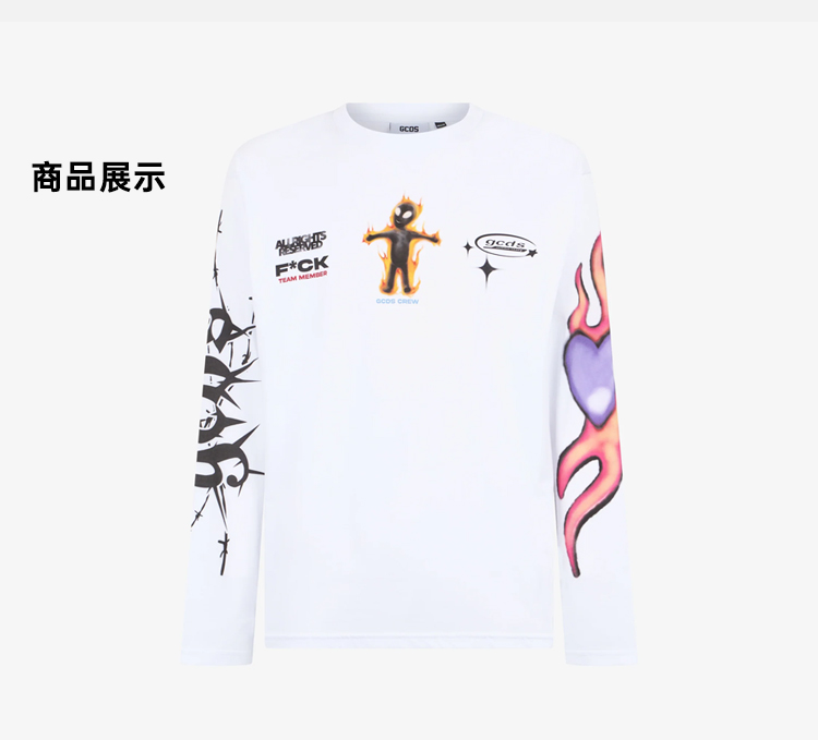 GCDS 男士外星人徽标印花棉质圆领长袖T恤 白色 B1CM2200JE9 10