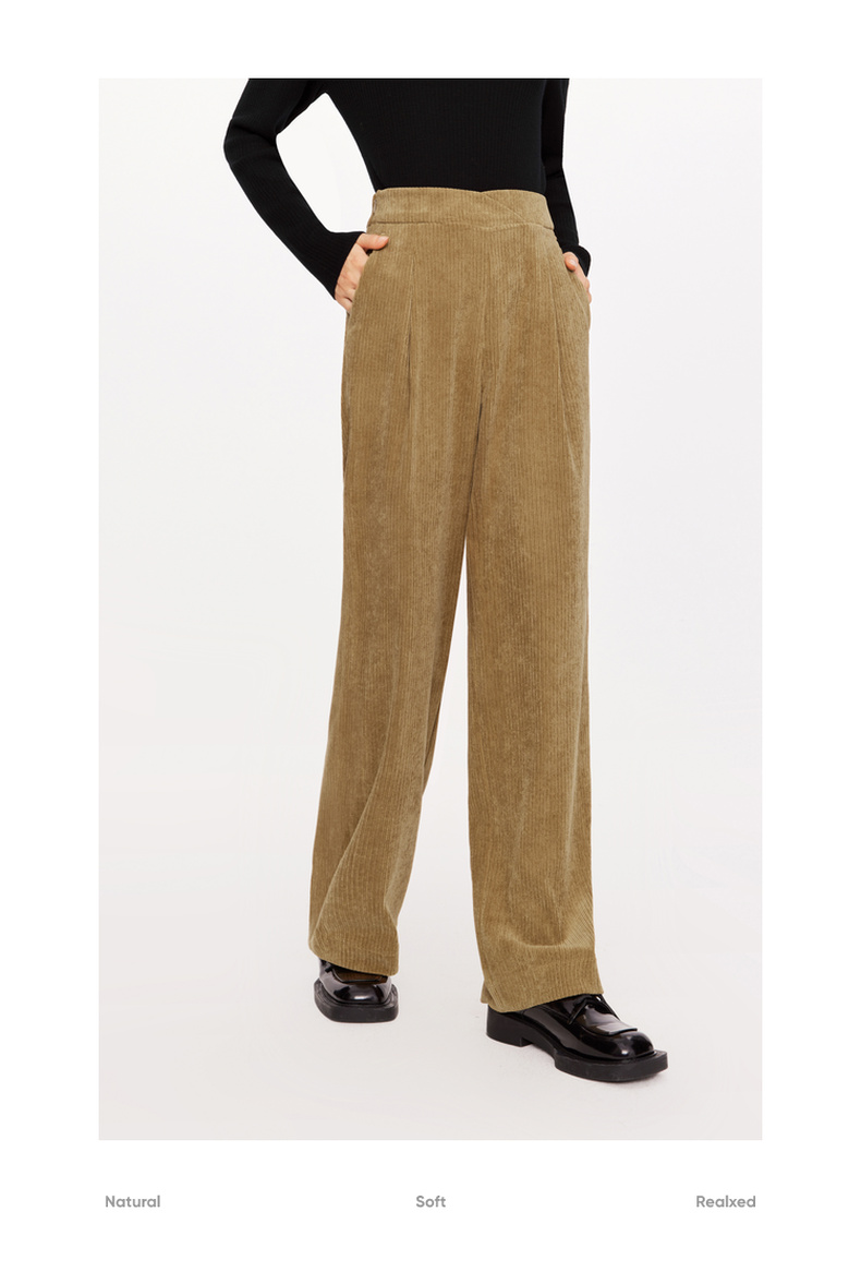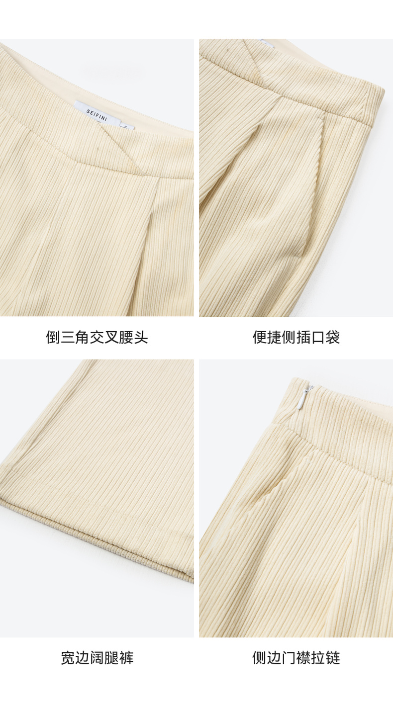 【严选】诗凡黎秋灯芯绒高腰阔腿拖地裤7D9251581