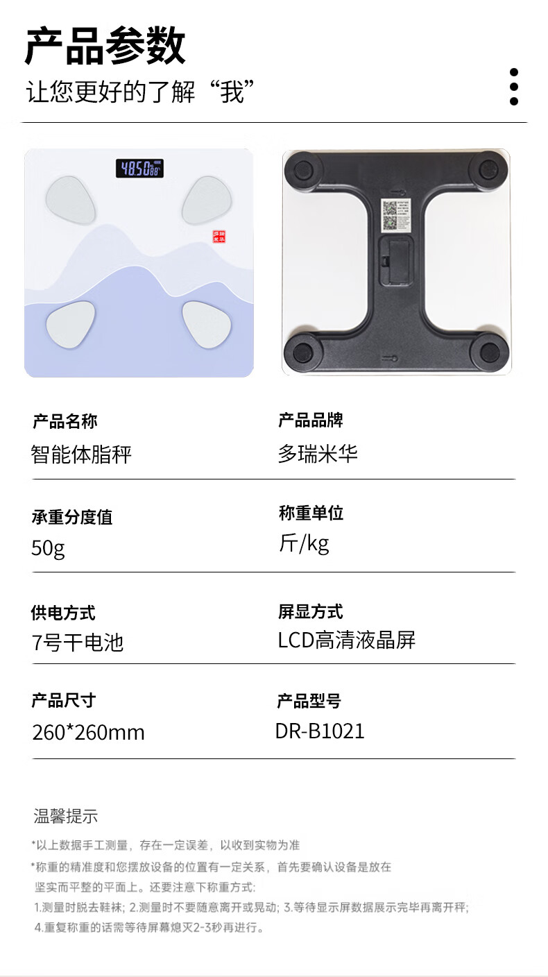【分仓直发包邮】多瑞米华体脂秤DR-B1022