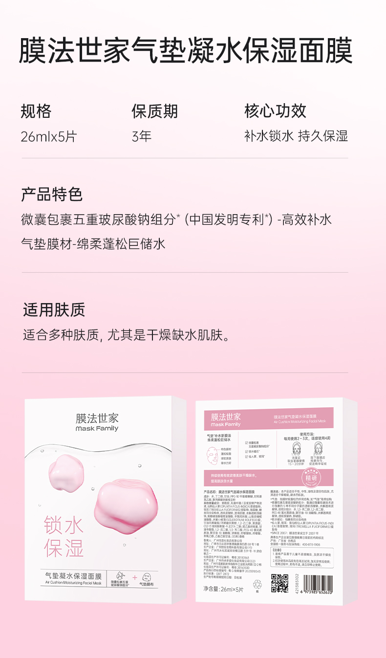 【锁水保湿】膜法世家气垫凝水面膜补水保湿嫩肤5片装*2盒