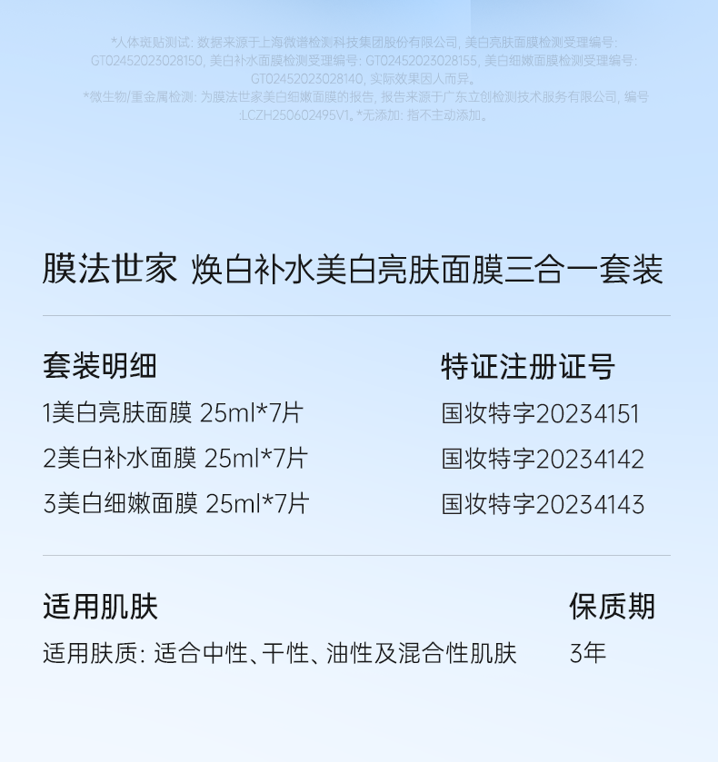 【美白亮润】膜法世家焕白补水面膜三合一套装21片装