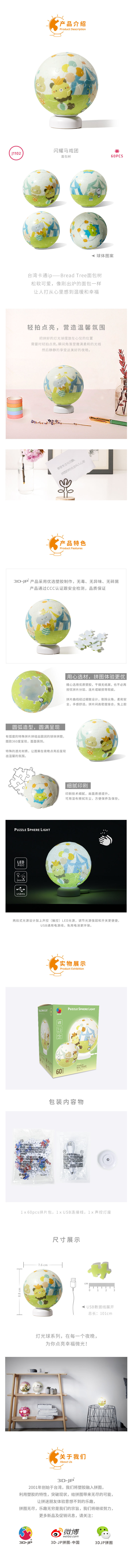 【折扣商品 不退不换】3寸 灯光球拼图 塑料拼图 J1102 面包树-闪耀马戏团