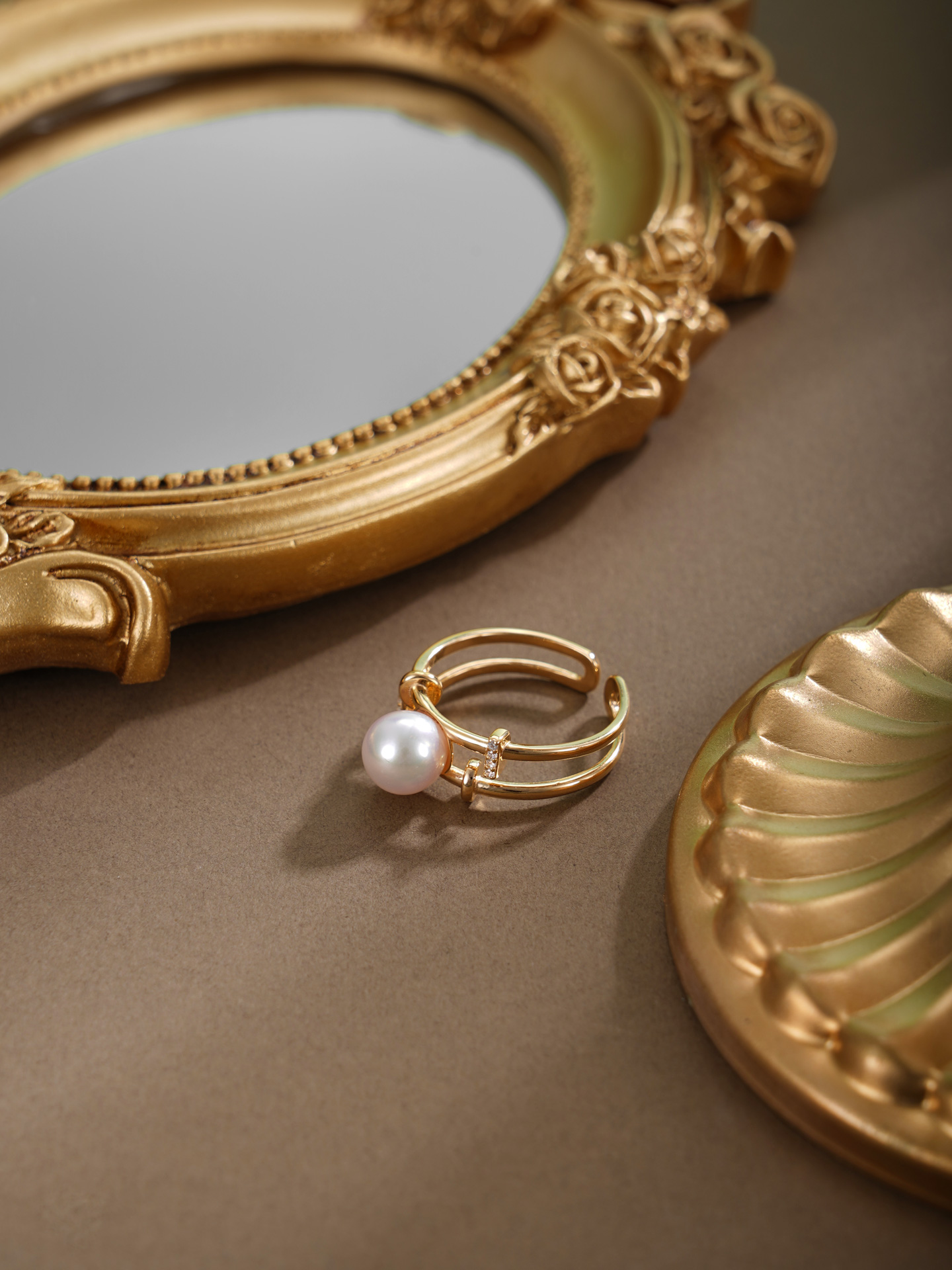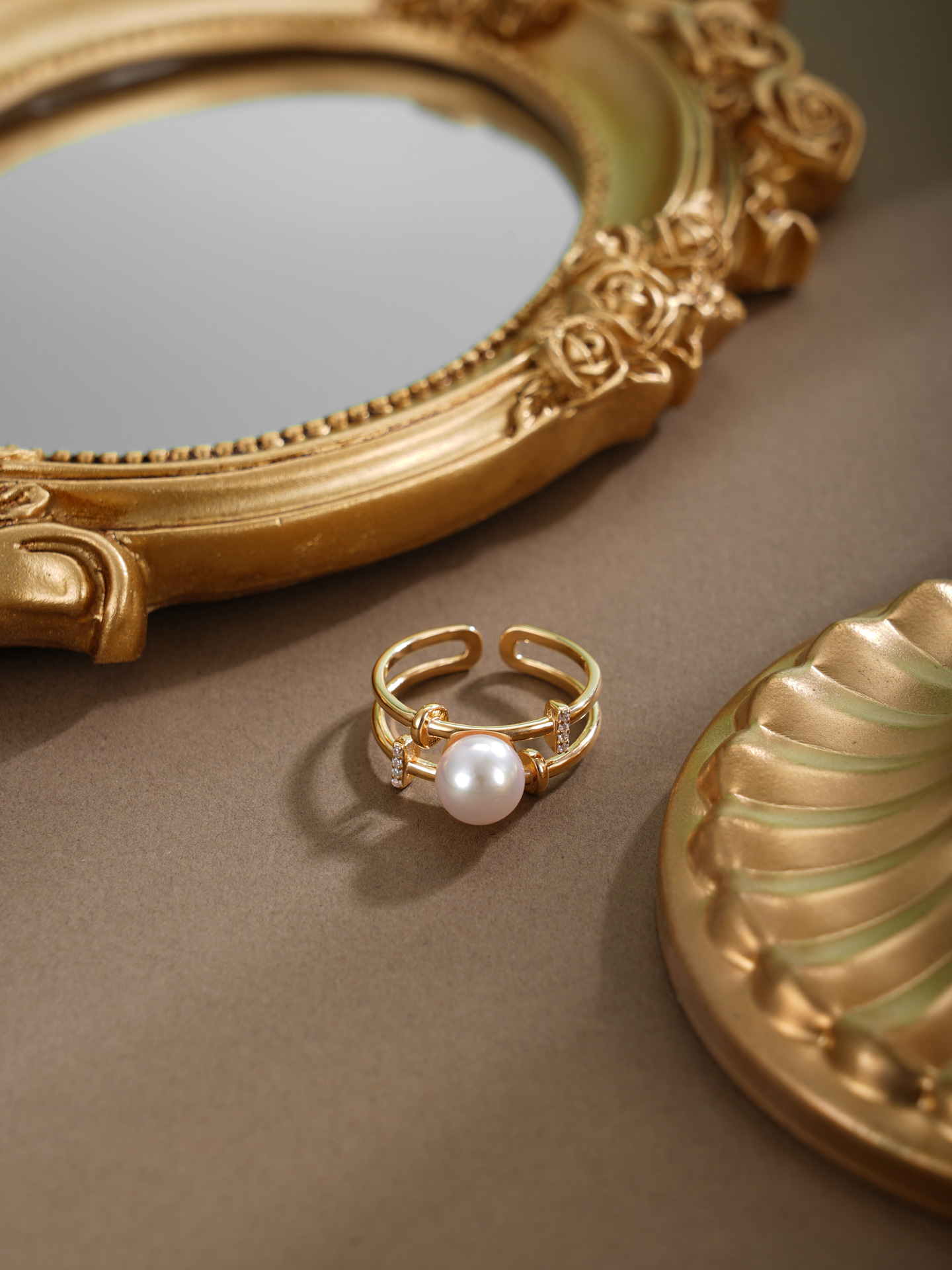 子佩集【奔赴之恋】银S925珍珠戒指【HJYJZ008】8mm珠镀金双圈两层2512