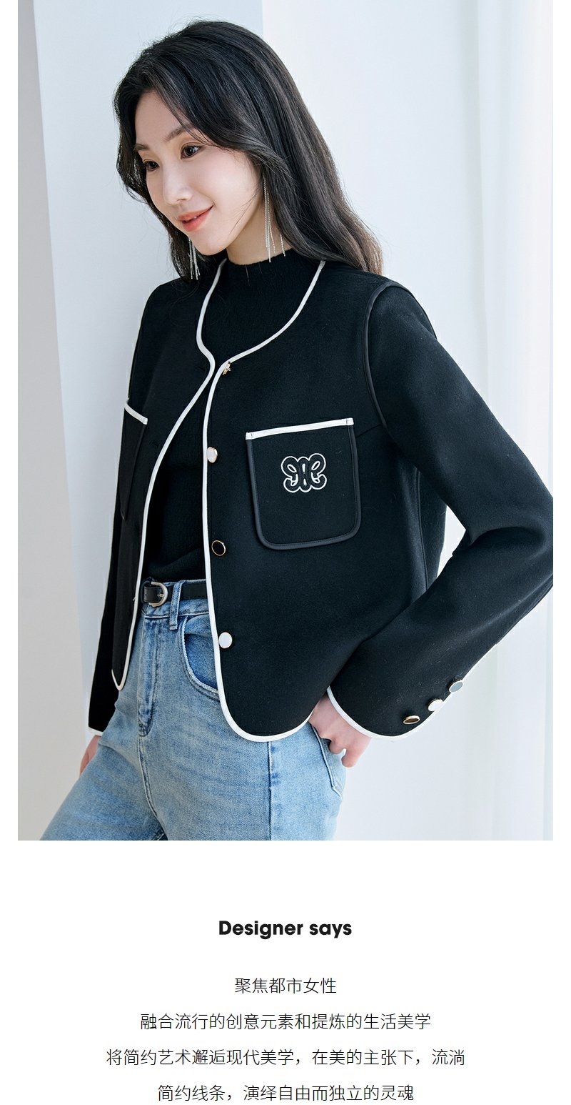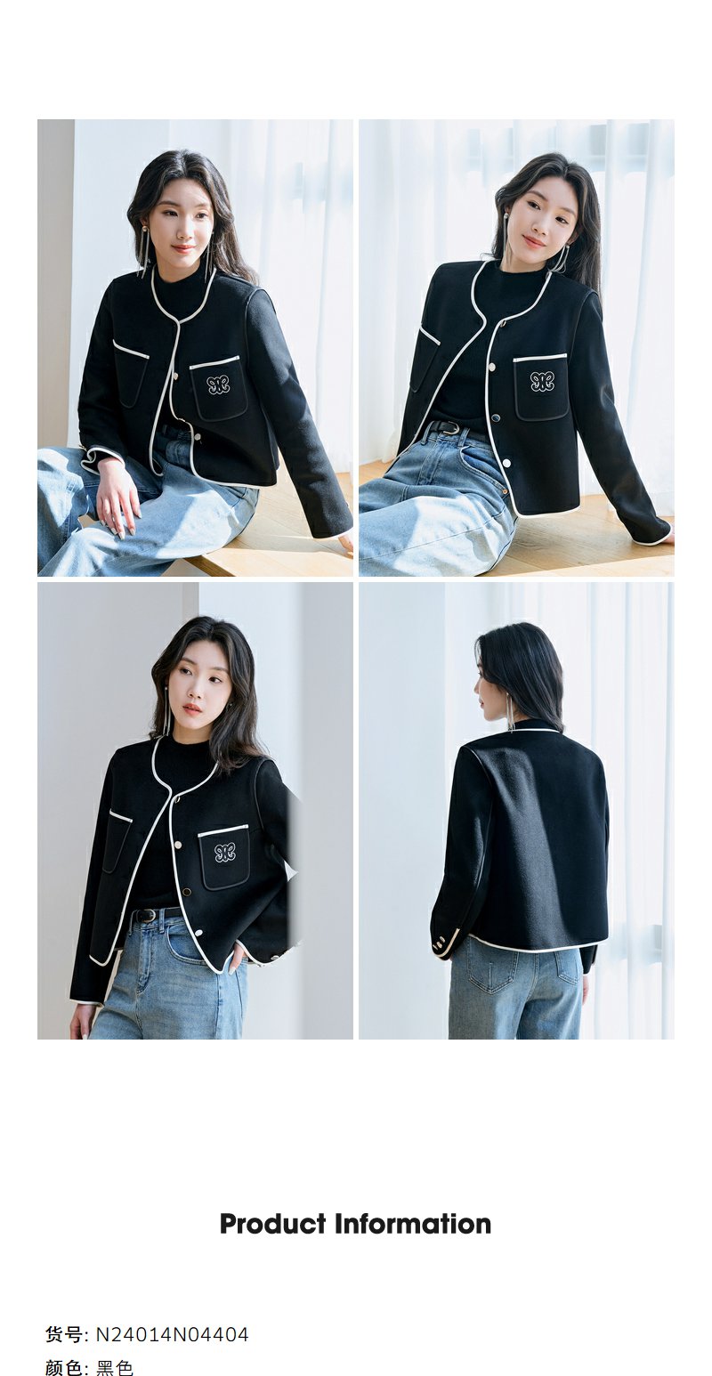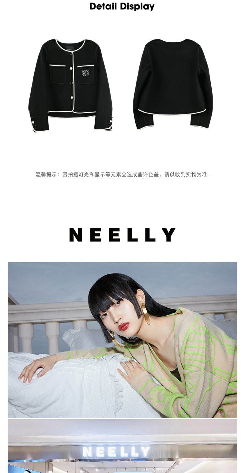 NEELLY纳俪商场同款100%绵羊毛短外套女撞色设计感时尚双面呢大衣N25094N04616