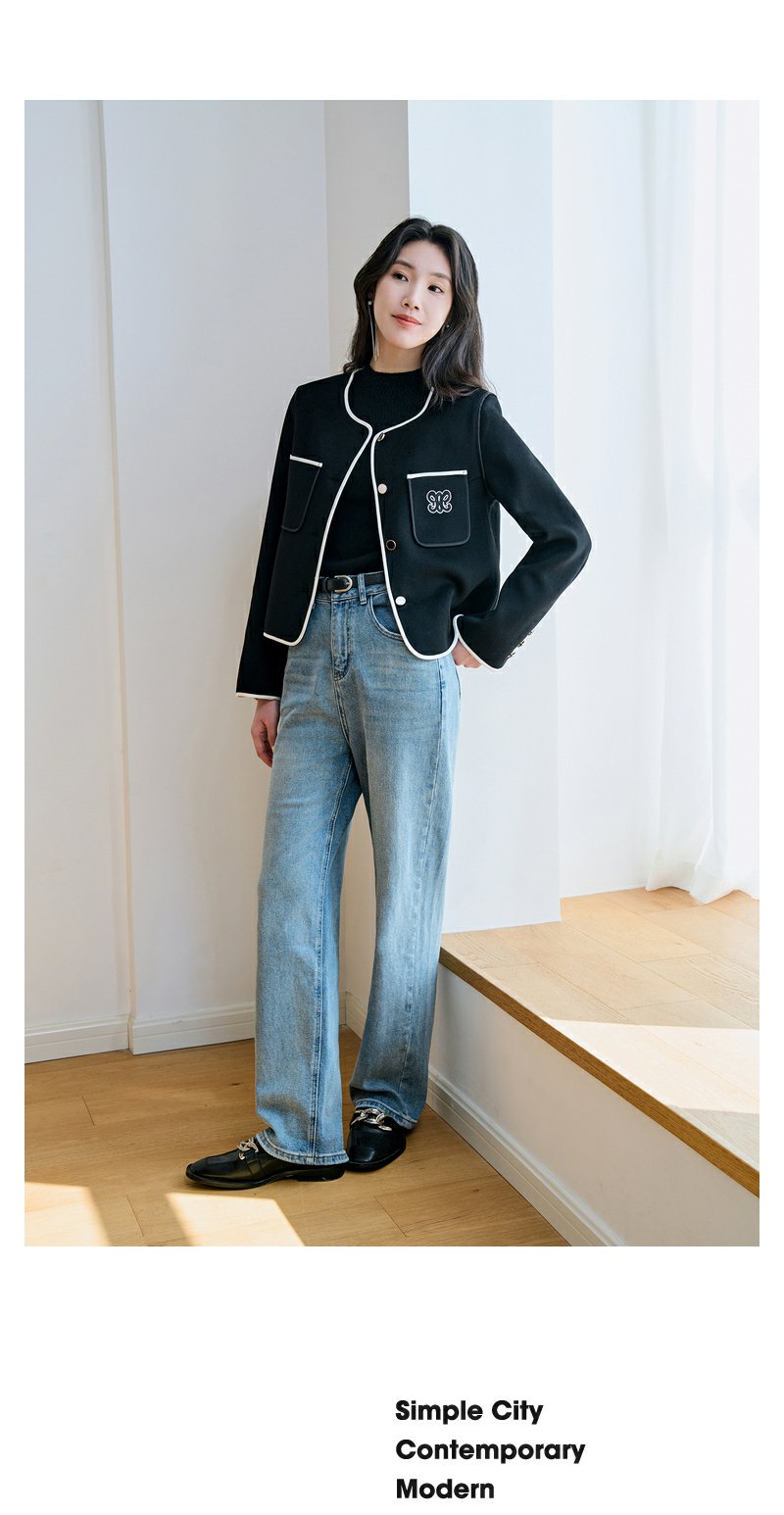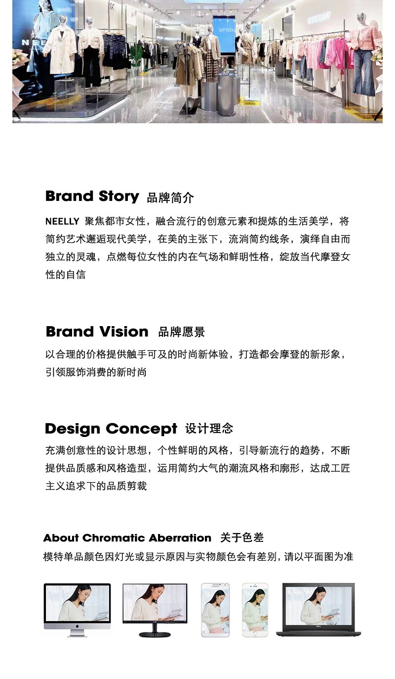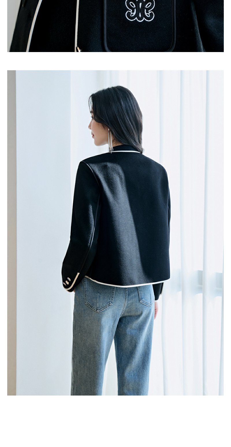 NEELLY纳俪商场同款100%绵羊毛短外套女撞色设计感时尚双面呢大衣N25094N04616