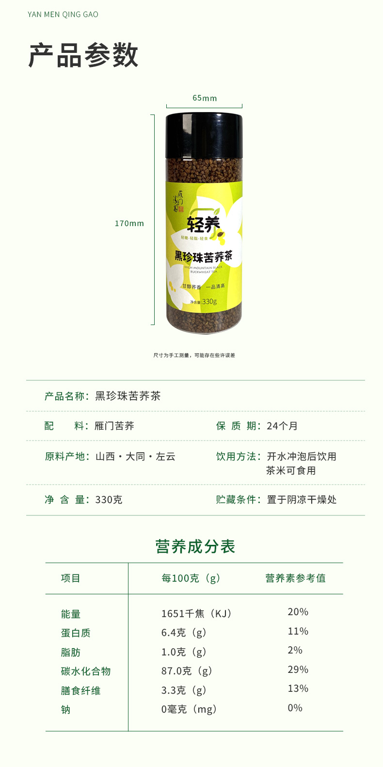 雁门清高黑苦荞茶330g 荞麦茶花草茶山西特产