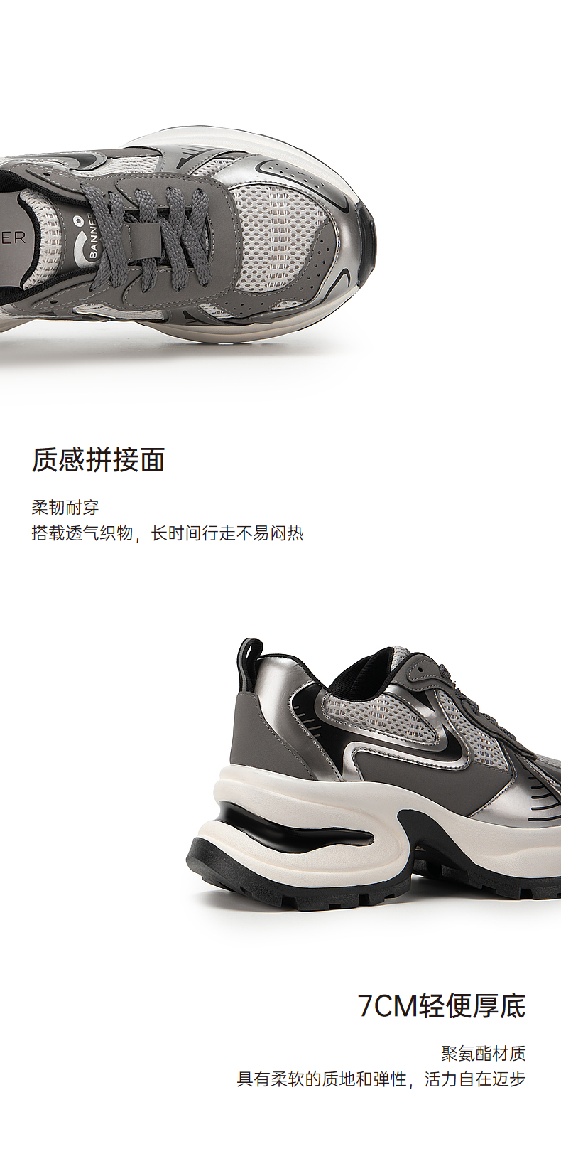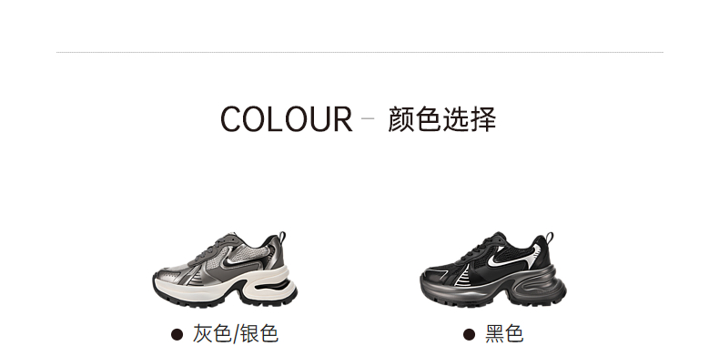 千百度轻便厚底银色老爹鞋女春季增高网面休闲运动鞋透气A24125501