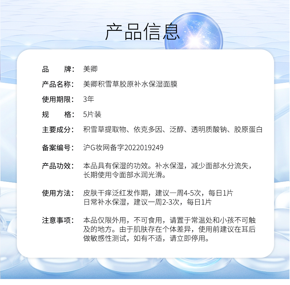 美卿积雪草胶原蛋白补水膜