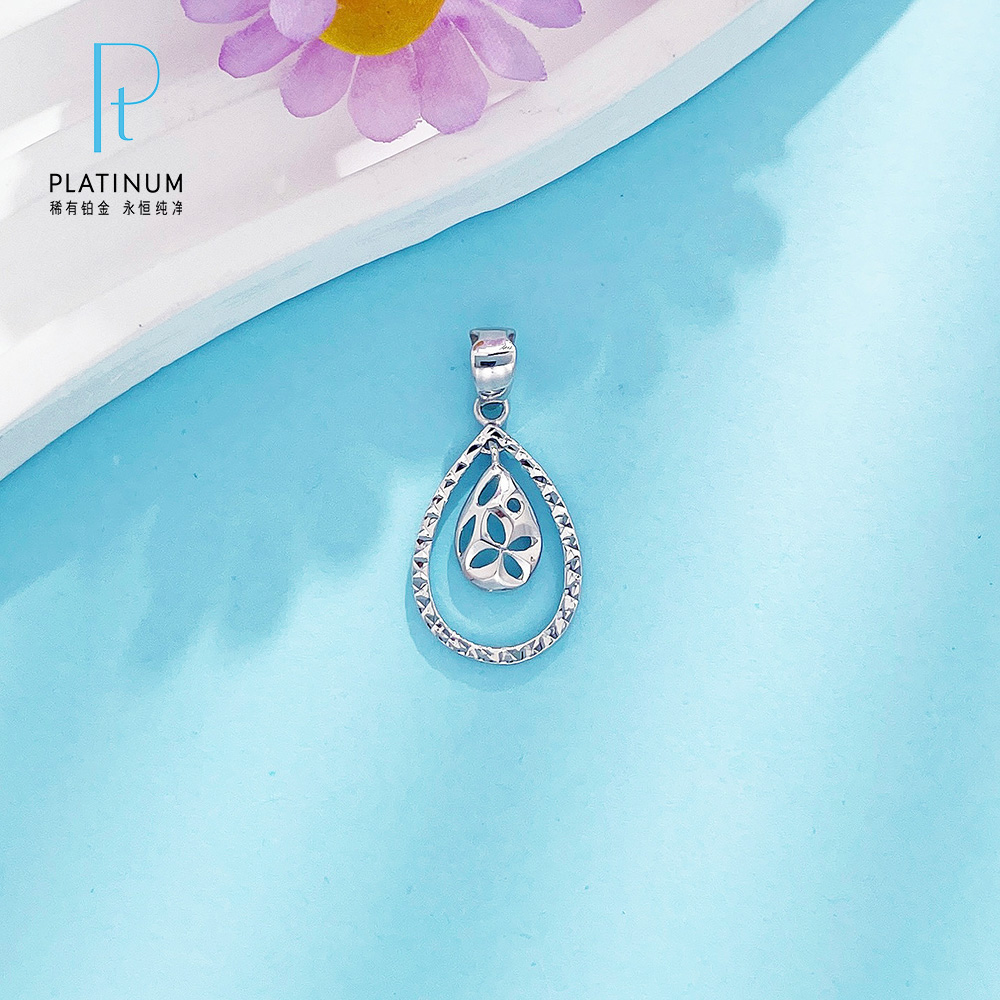 【限时8.8折】【线上铂金馆】PT950 【国际铂金协会】铂金镂空优雅幸运双层灵动水滴吊坠(ACPTDZ00041)预售产品下单后不退款不退货不换货不补差价)