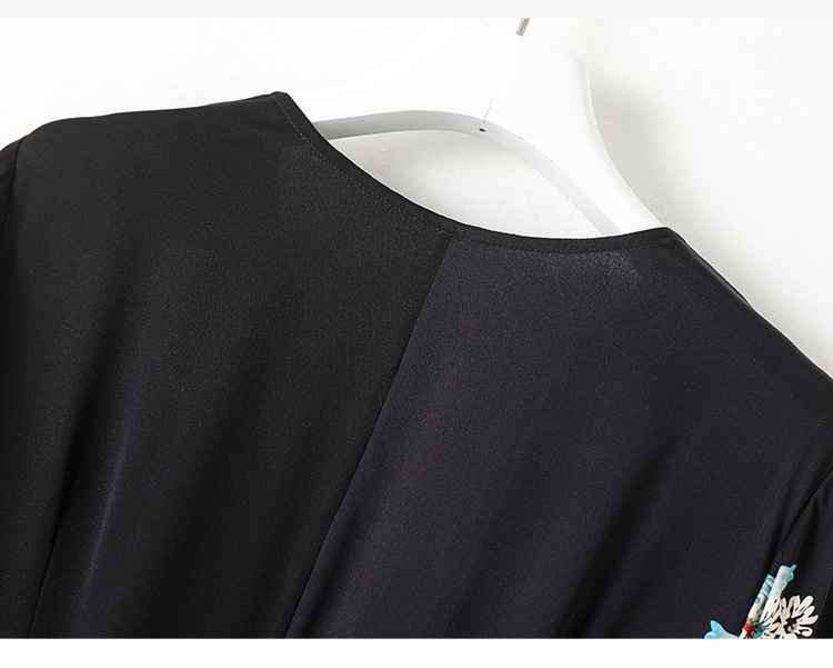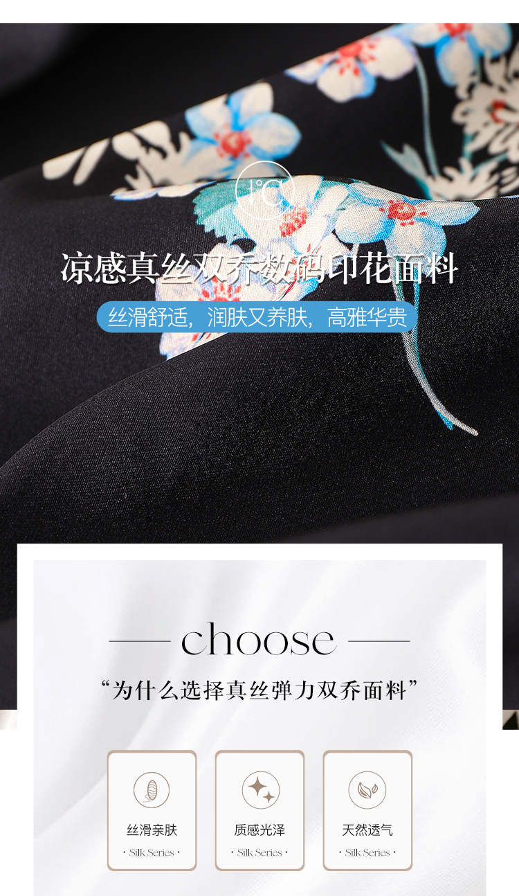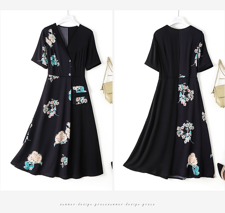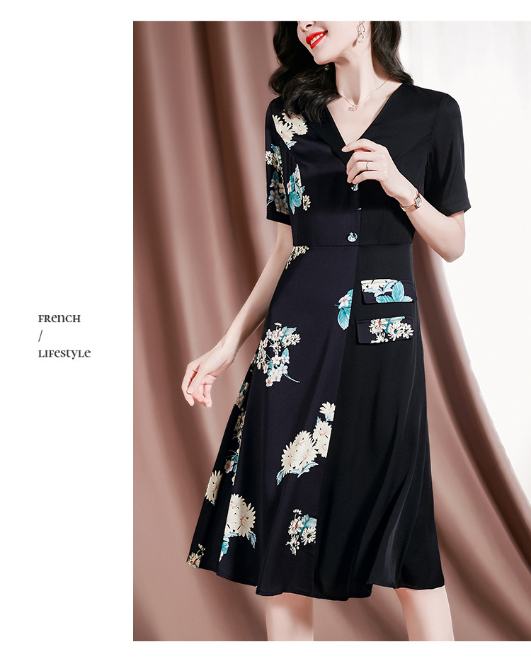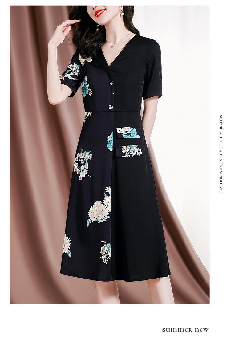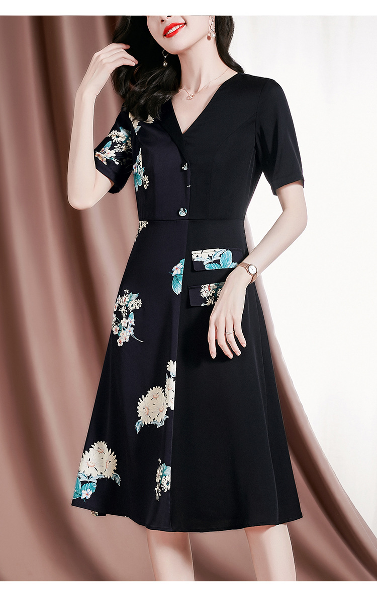 新款桑蚕丝印花优雅V领短袖女士连衣裙SM-82297329