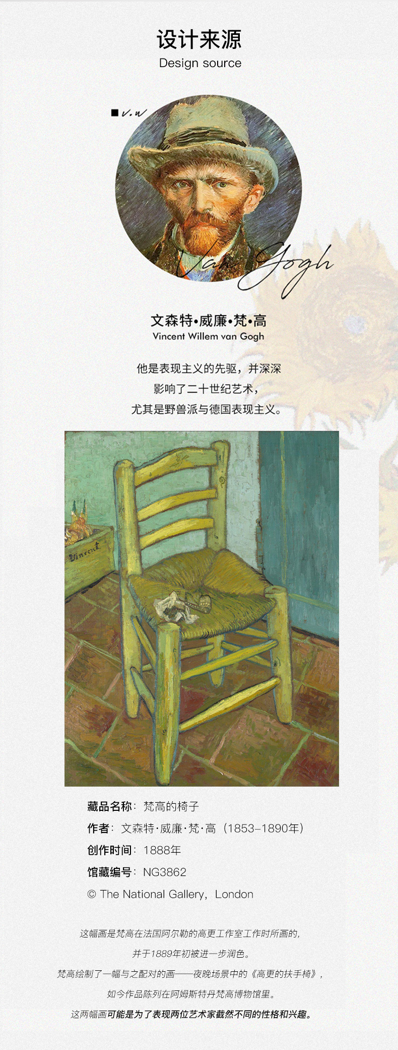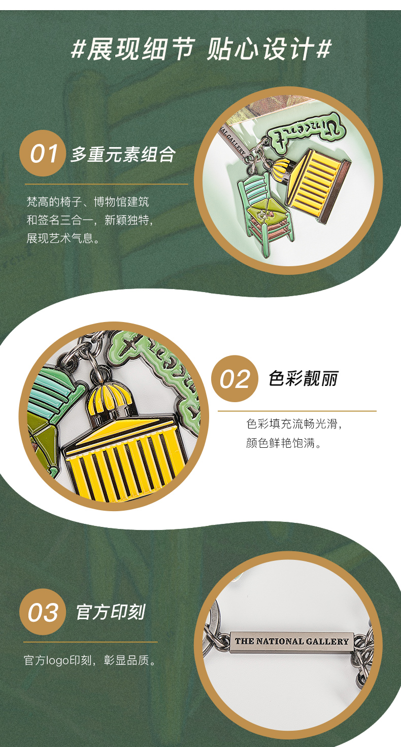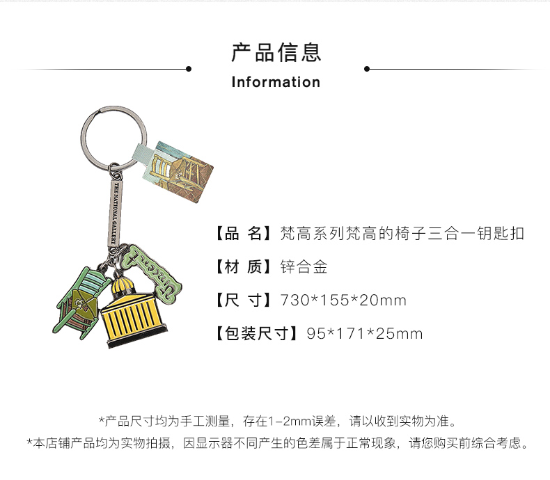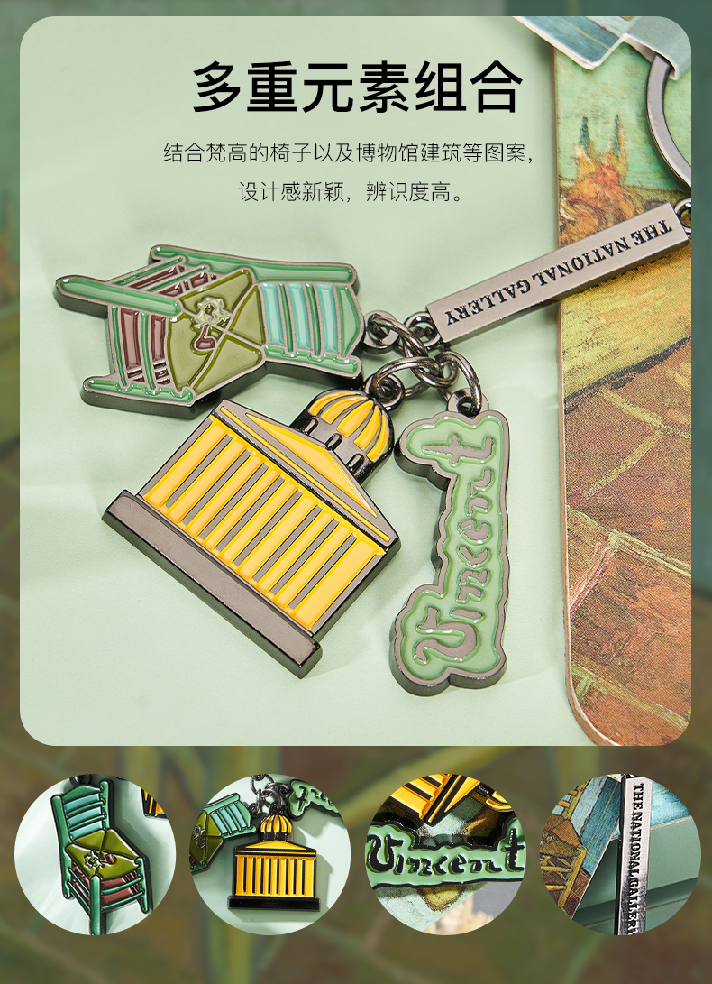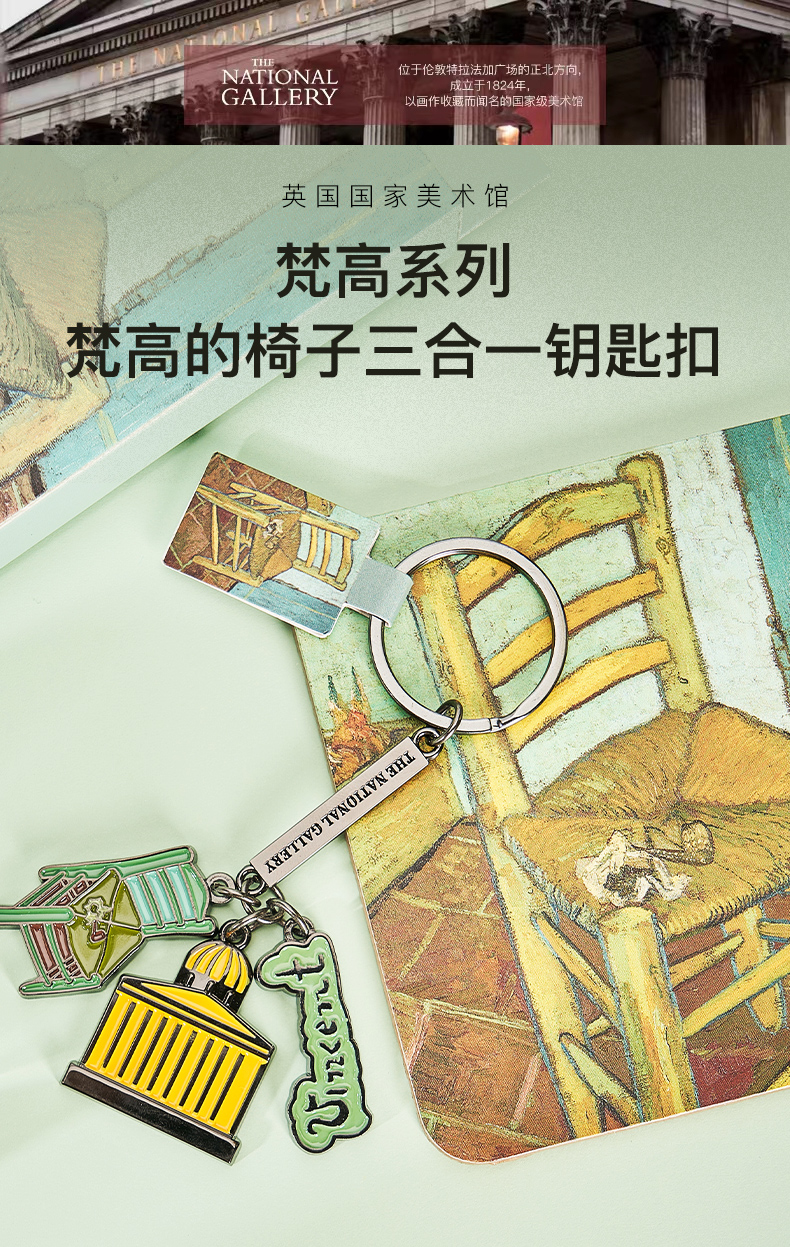 The National Gallery大师系列梵高的椅子三合一金属钥匙扣链挂件创意礼物