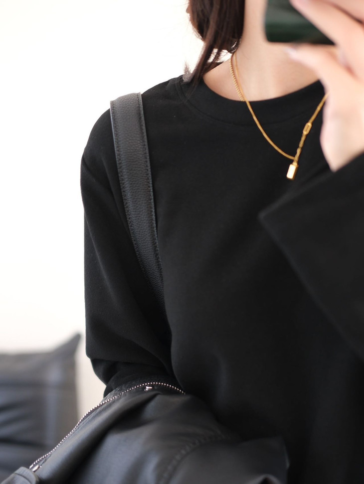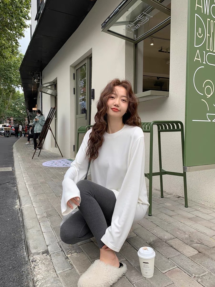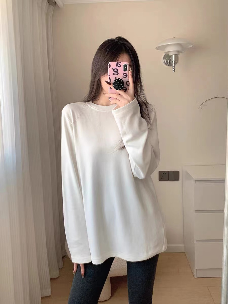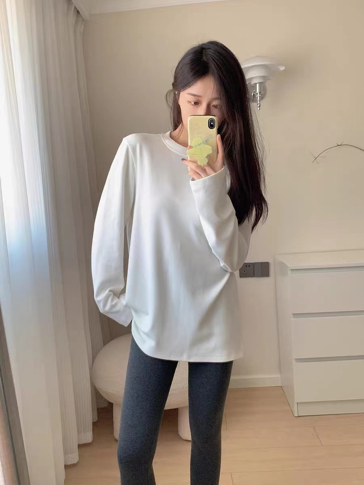 基础纯色T简直就是秋冬镇店之宝! 冬季双面澳绒面料,触感软糯舒适☁️ 长度遮住PP一点 做叠穿巨赞! 上身轻盈透气,且不易起球! 圆领设计拉长颈部线条显得脸型更加小巧 落肩袖修饰肩线,轻松穿出娇小感 无论面料、版型、做工、颜色、搭配度、 价格、都无可挑剔! 绝对的穿搭刚需硬货❗️ 可以说衣柜里没有一件衣服是它不能搭配的!
