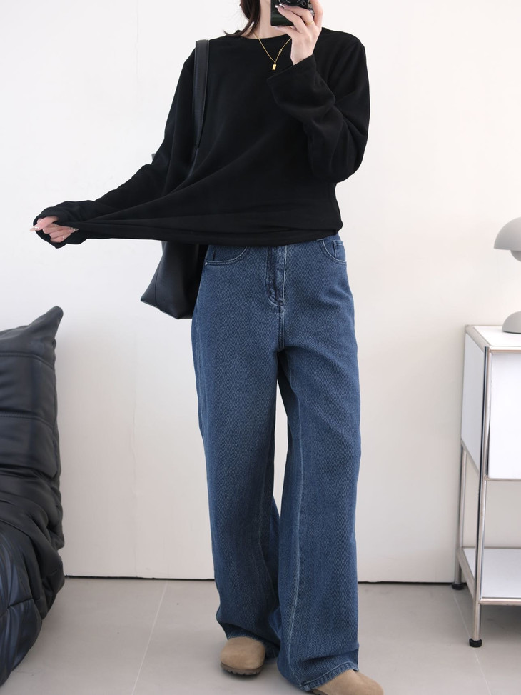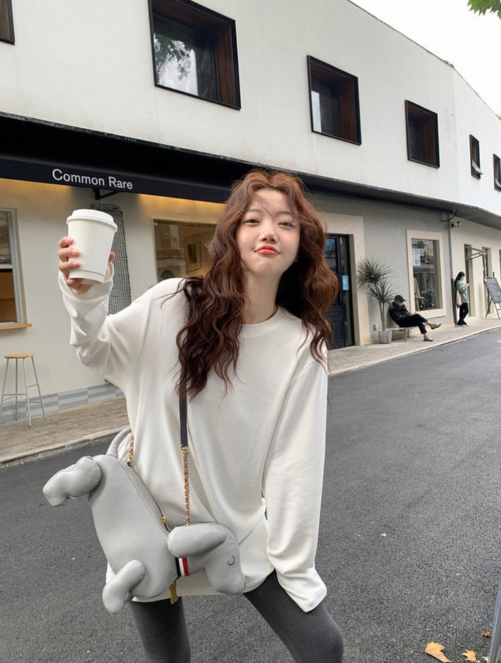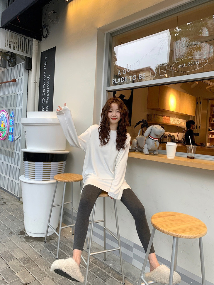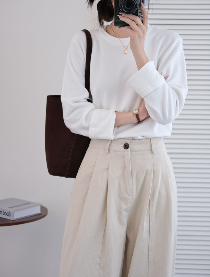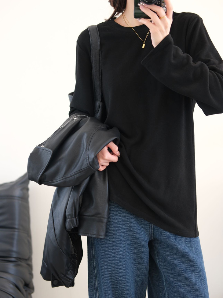 基础纯色T简直就是秋冬镇店之宝! 冬季双面澳绒面料,触感软糯舒适☁️ 长度遮住PP一点 做叠穿巨赞! 上身轻盈透气,且不易起球! 圆领设计拉长颈部线条显得脸型更加小巧 落肩袖修饰肩线,轻松穿出娇小感 无论面料、版型、做工、颜色、搭配度、 价格、都无可挑剔! 绝对的穿搭刚需硬货❗️ 可以说衣柜里没有一件衣服是它不能搭配的!