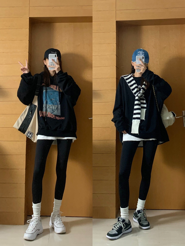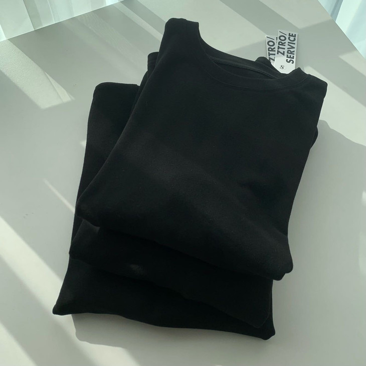 面料软软糯糯的,内里还有一层磨毛 太适合秋冬打底了,真的很舒服,还暖暖滴 版型宽松,任意搭配