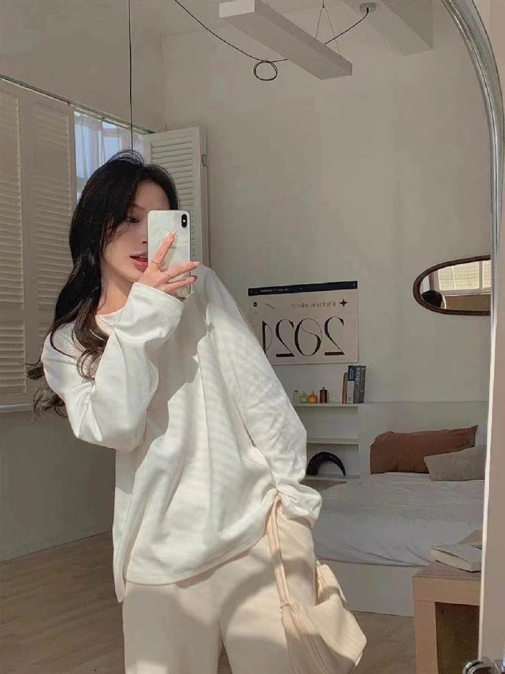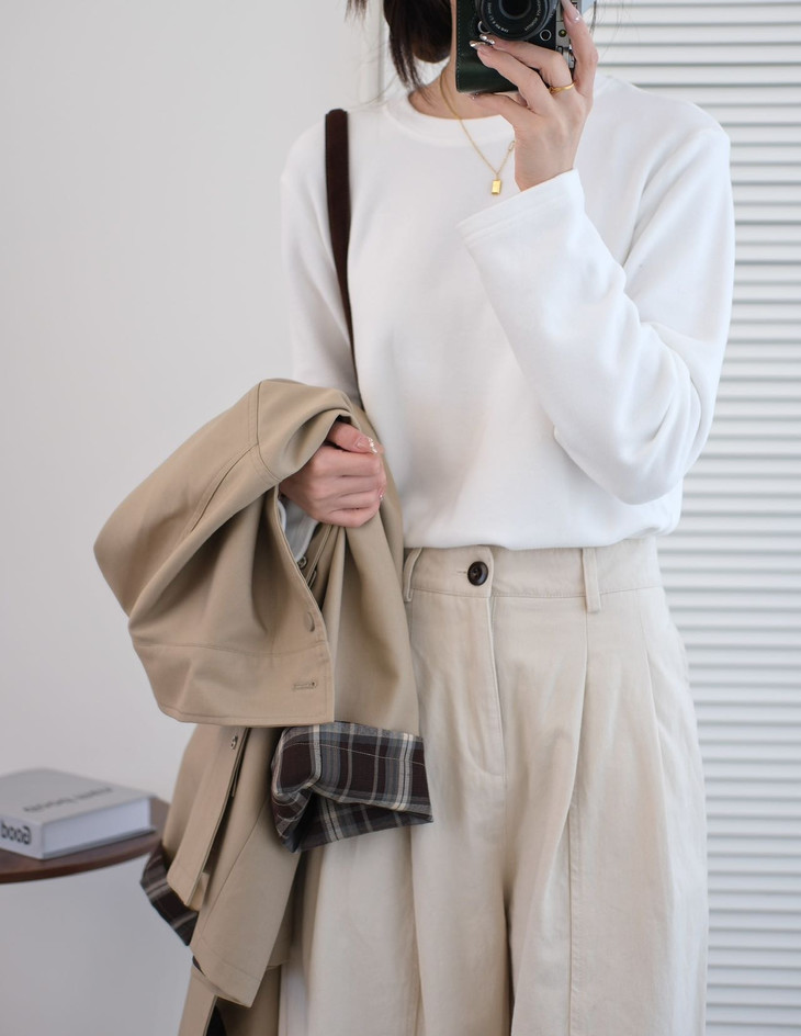 软软糯糯万搭T 这种基础版型只能说摸到的才会知道有多值 奶油白加上磨毛感不多说 相信我的宝 真的闭眼入吧!!!