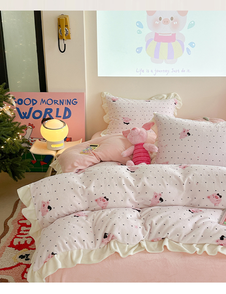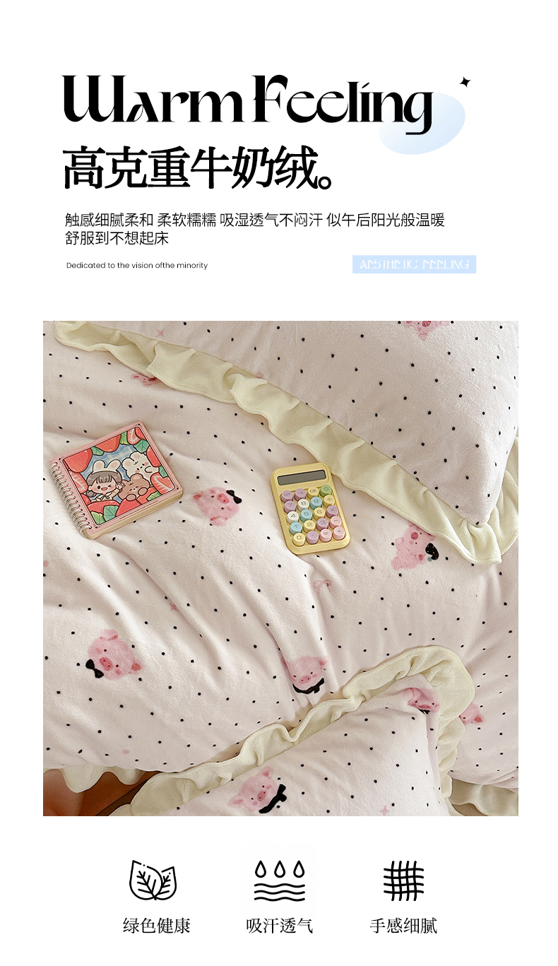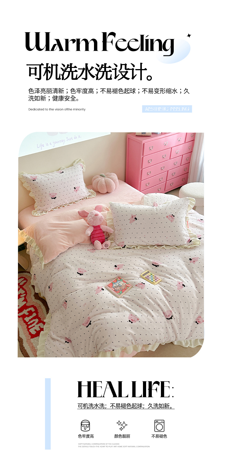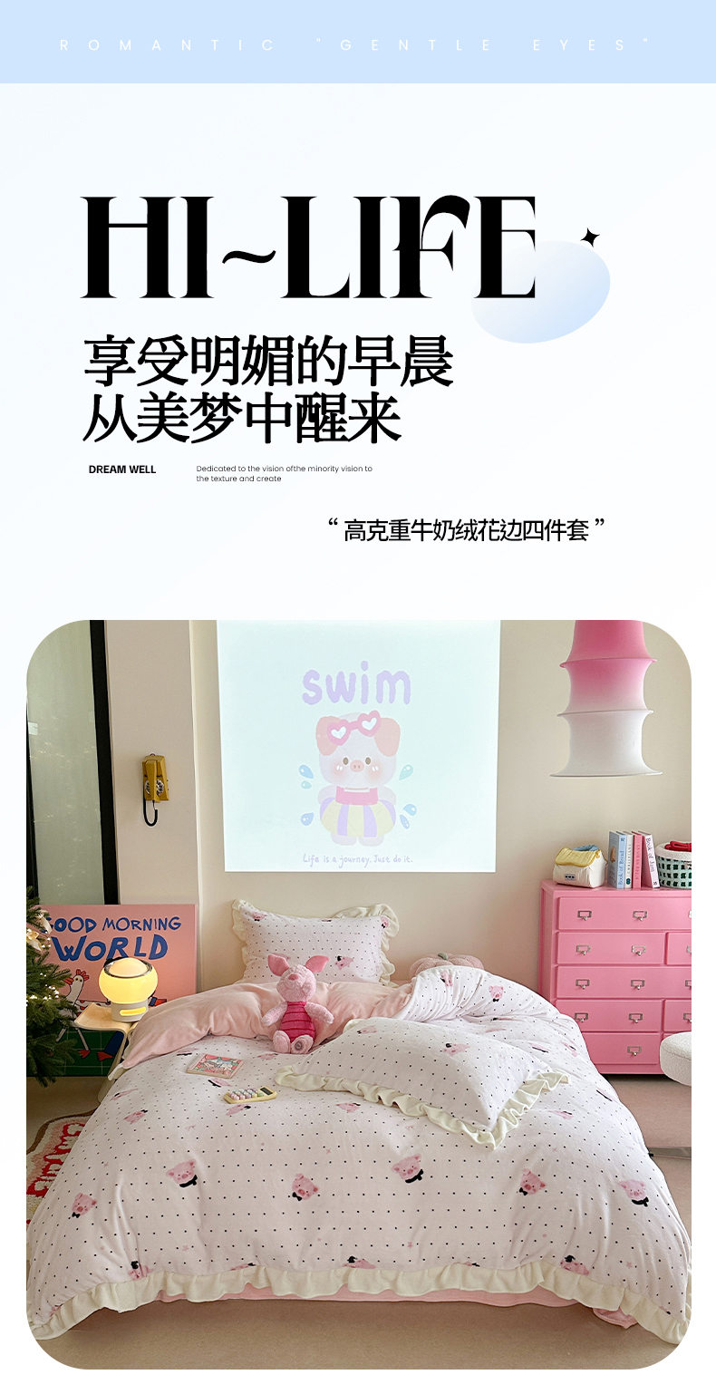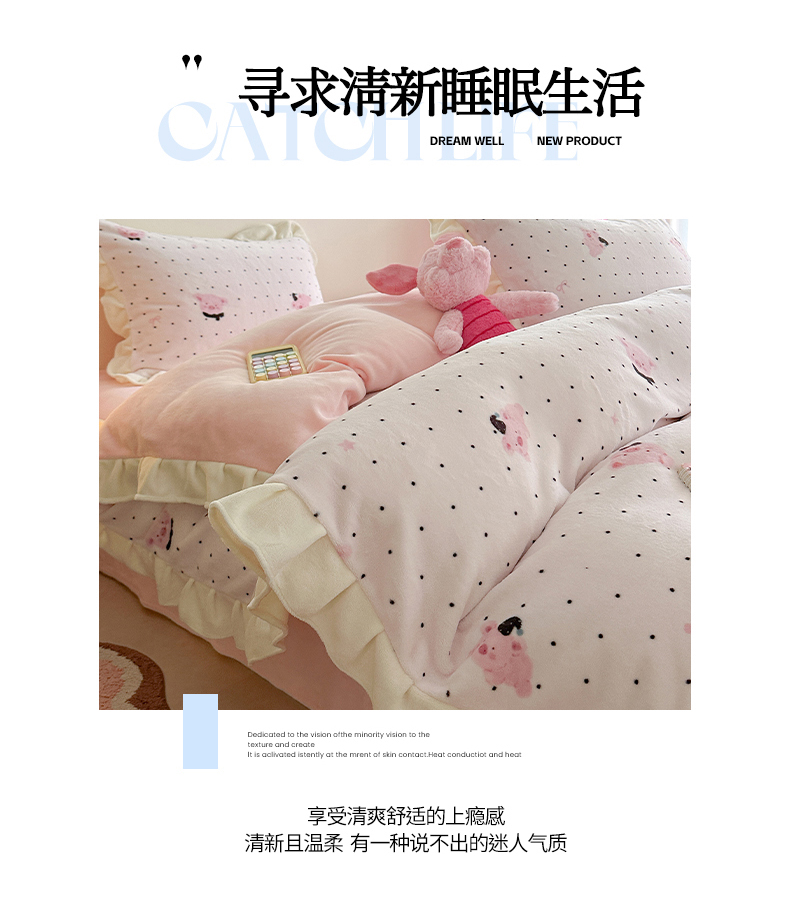 【秋冬新品】高克重保暖花边牛奶绒卡通四件套