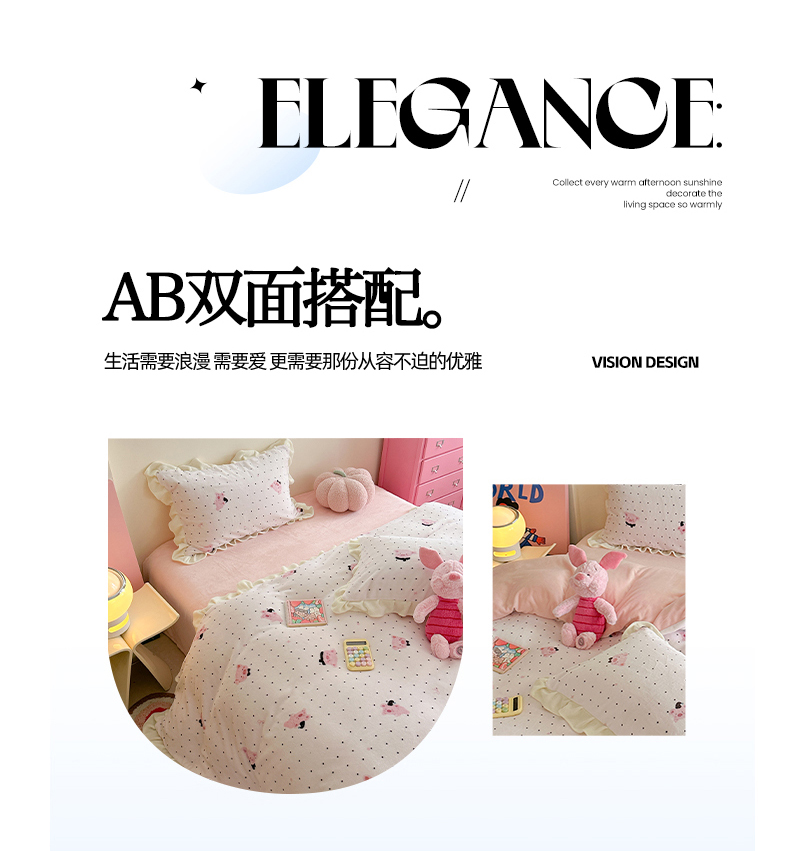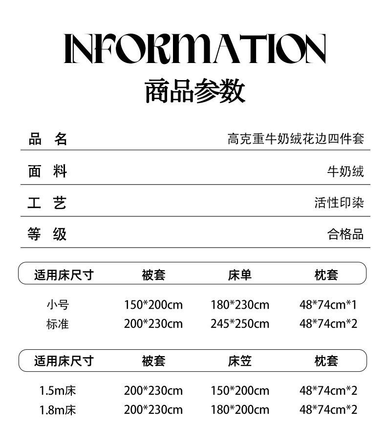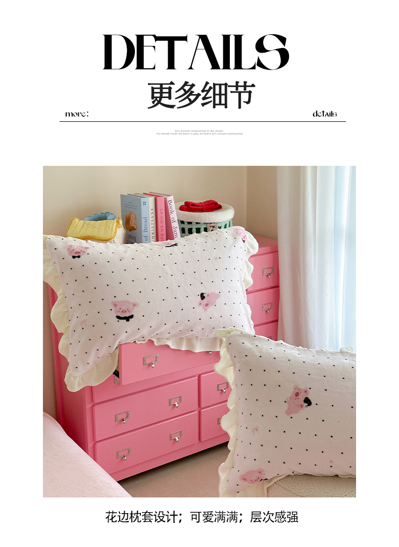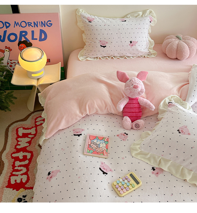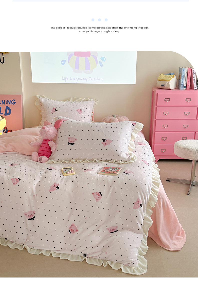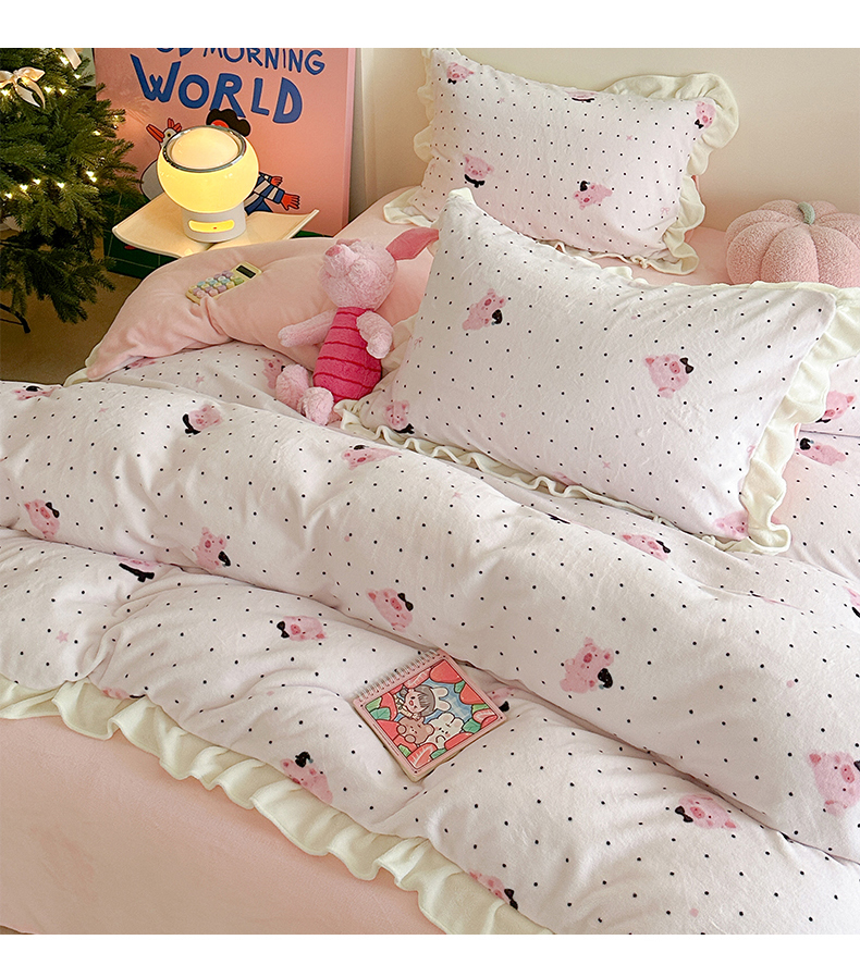 【秋冬新品】高克重保暖花边牛奶绒卡通四件套