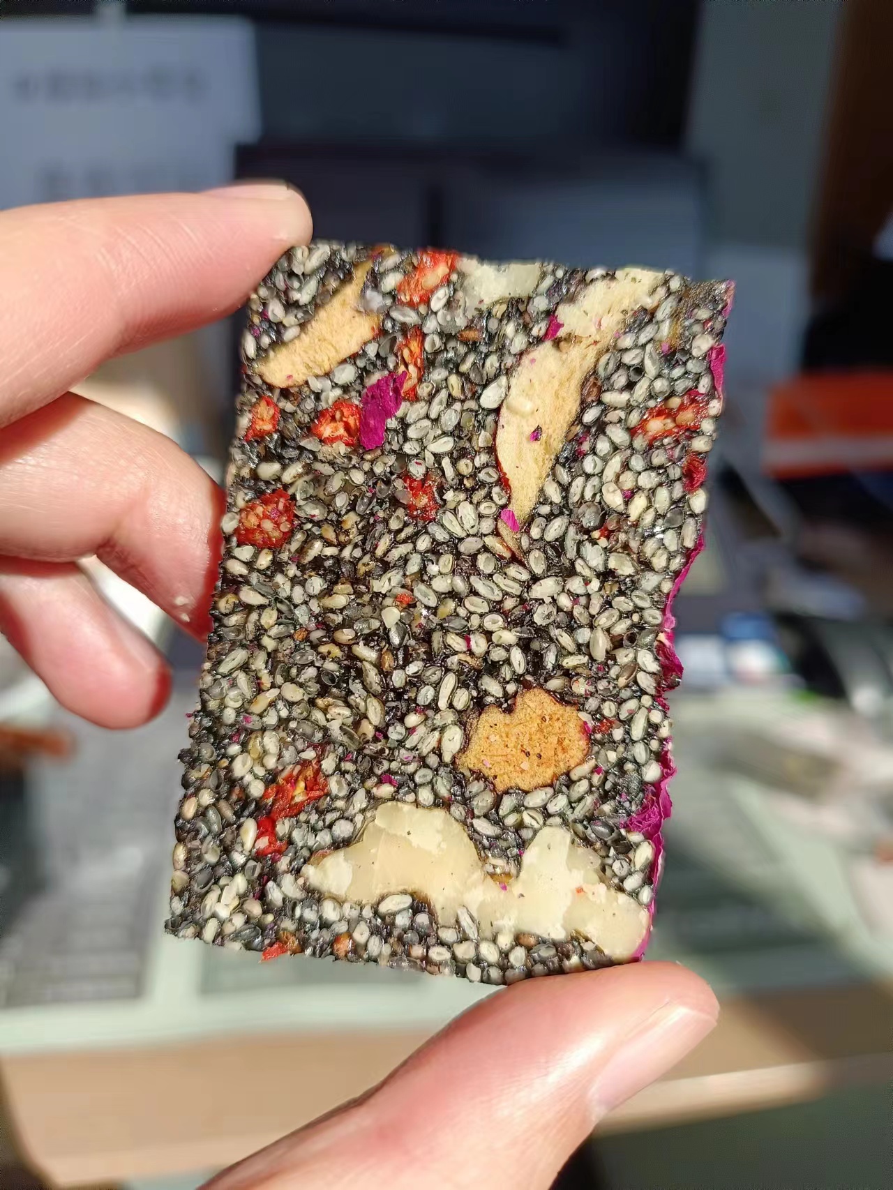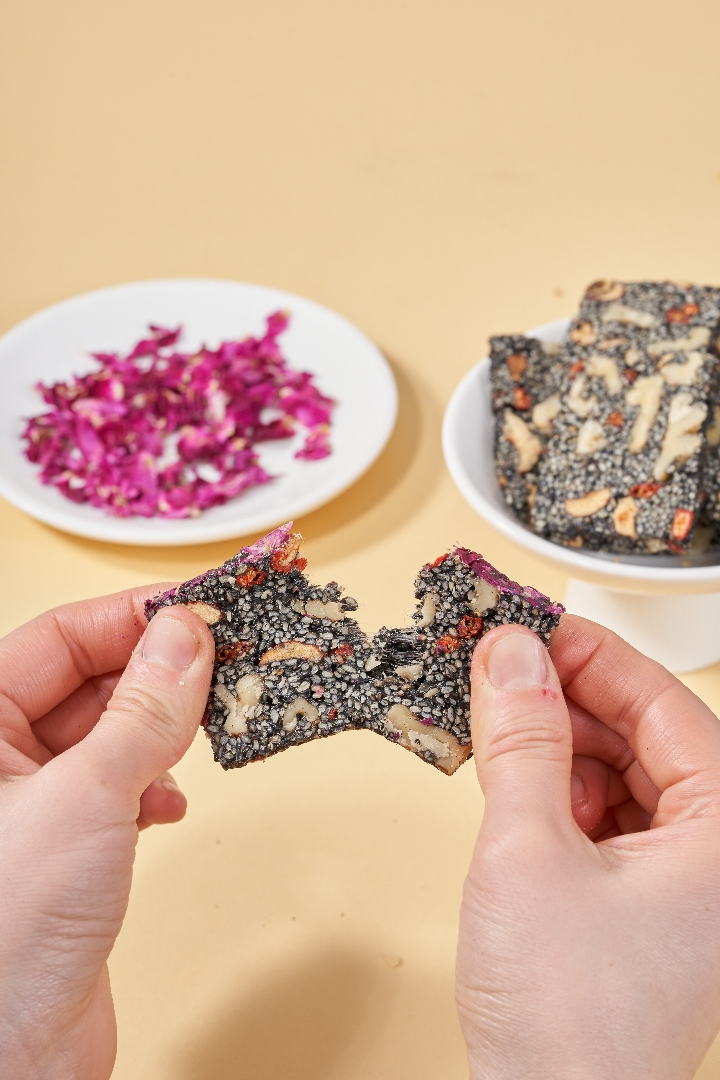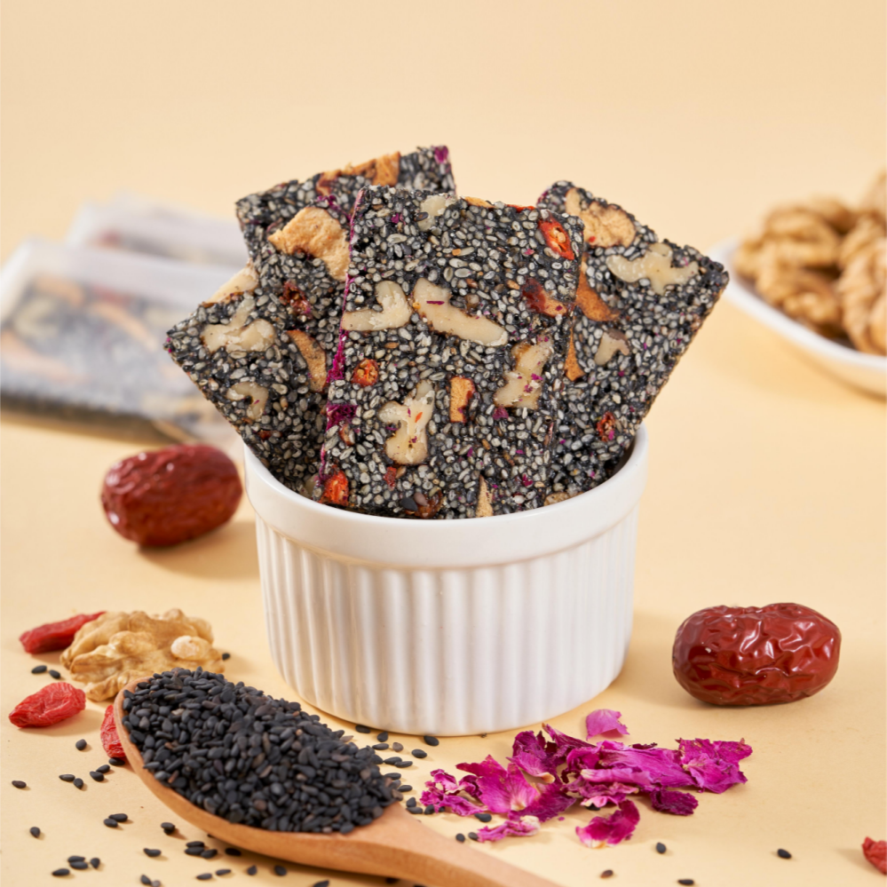 【配料表】:(玫瑰味):黑芝麻、核桃仁、红枣、枸杞、平阴重花瓣玫瑰、麦芽糖 、食用油