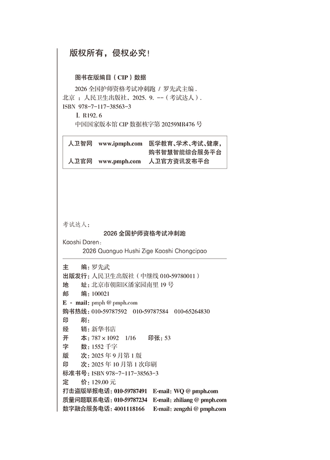 考试达人 2026全国护师资格考试 冲刺跑 罗先武 主编 护理学师初级护师人卫教材备考 2026护师轻松过人卫版 人民卫生出版社